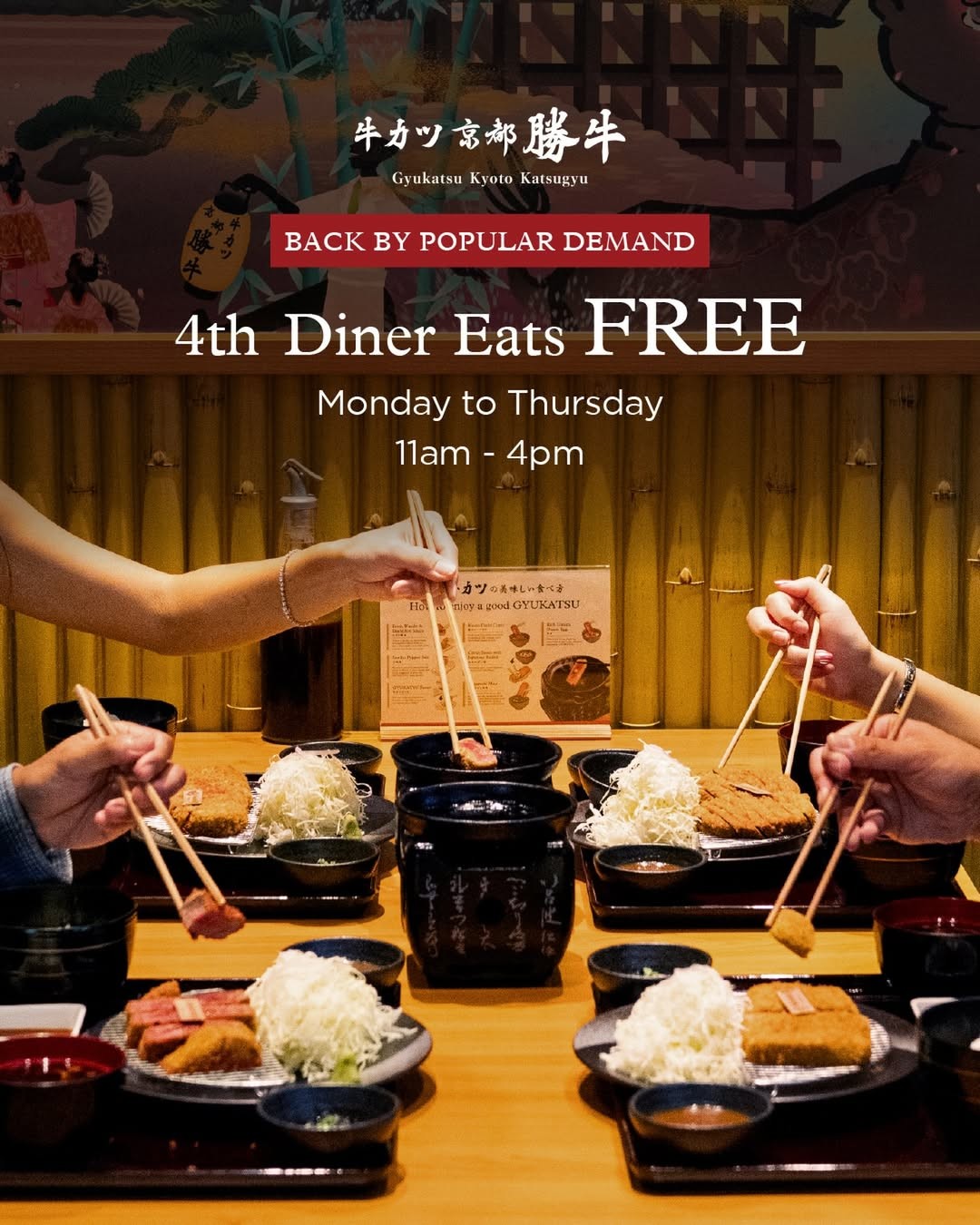 Even with conditions, the core idea remains generous. Paying for three mains and enjoying four full gyukatsu sets is hard to ignore.