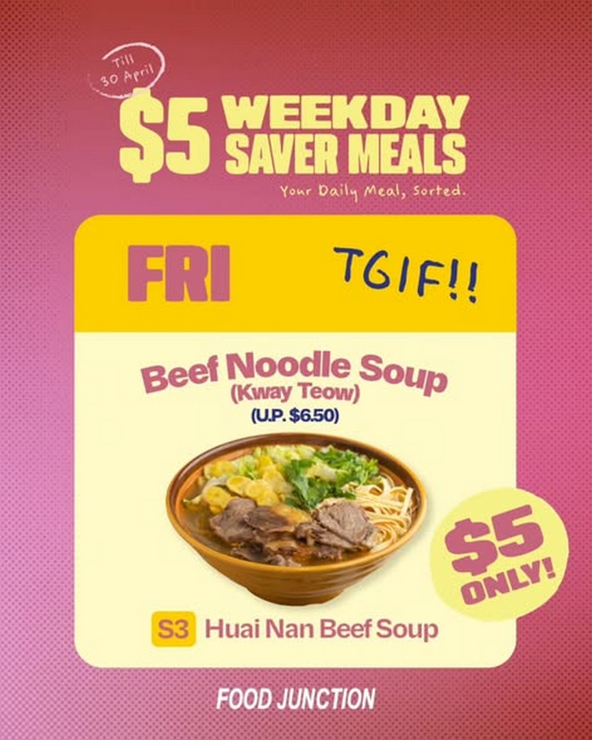 If you’re someone who loves planning your meals around good deals, Food Junction’s $5 Weekday Saver Meals give you plenty of reason to look forward to lunchtime. With this promotion running for almost two full months, there is ample opportunity to explore different meals, plan your visits, and perhaps even make a new favourite dish your go-to lunch option.