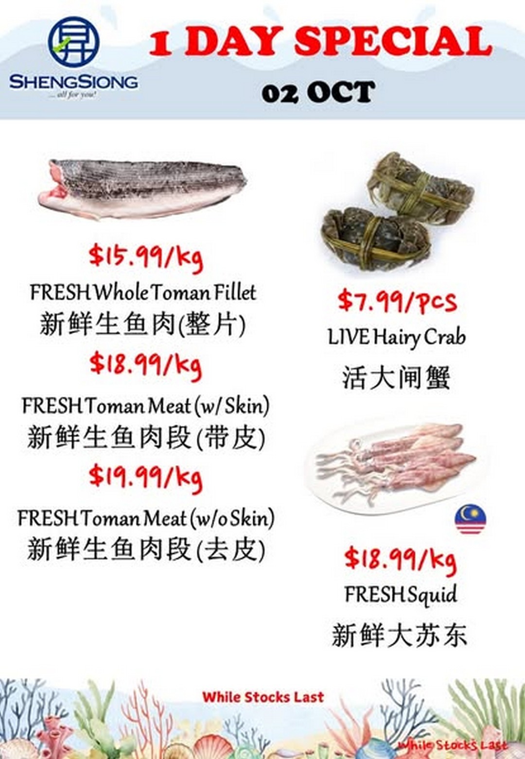 In summary, Sheng Siong Supermarket’s seafood specials on 2 October 2025 are not to be missed. With high-quality, fresh seafood available at attractive prices, shoppers can enjoy delicious meals at home, improve their culinary skills, and even try new dishes. The limited-time nature of the promotion adds excitement and urgency, ensuring that those who act quickly are rewarded with the very best catch of the day. For anyone passionate about seafood or simply looking to enjoy a wholesome, flavourful meal, this is the perfect opportunity.