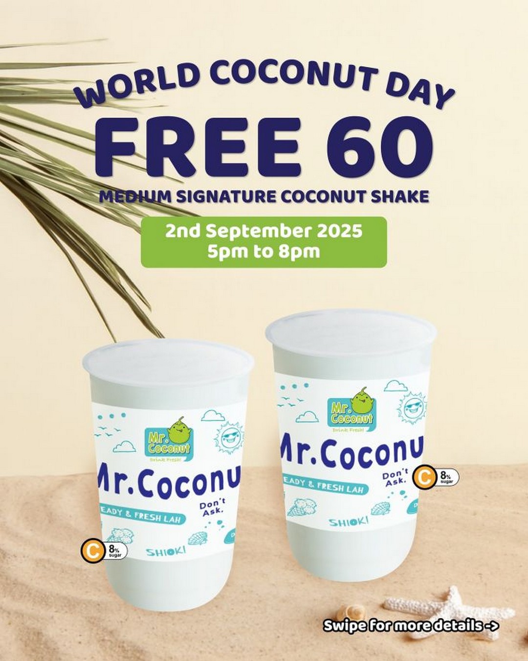 Mr Coconut’s shakes have become part of Singapore’s modern food culture, and this event gives everyone – loyal fans and curious first-timers alike – a chance to be part of the fun. With the timing set conveniently in the evening and outlets spread across the island, there is every reason to head down and celebrate World Coconut Day with a shake in hand.