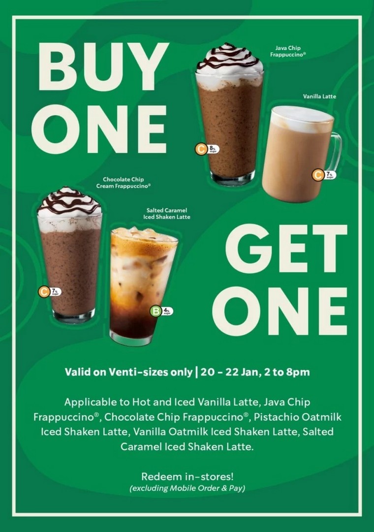 The deal is available every day from Tuesday to Thursday, between 2pm and 8pm, across all Starbucks stores in Singapore. It’s designed for in-store purchases only, which means there’s no online or delivery option, making it perfect for those who enjoy the experience of sipping their favourite coffee in the store ambiance.