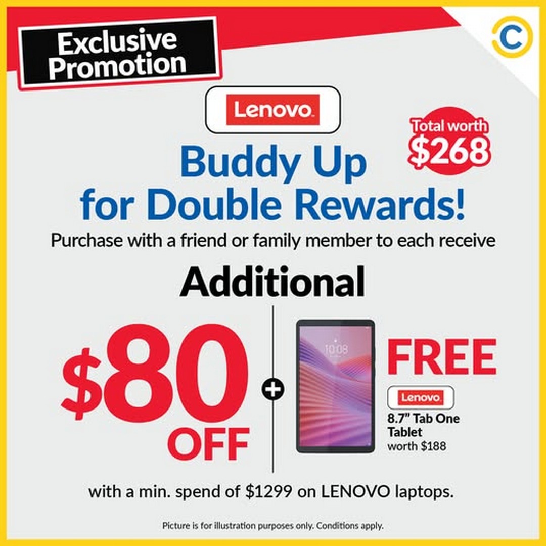 In conclusion, COURTS’ “Buddy Up for Double Rewards with Lenovo” promotion is an ideal opportunity for Singapore shoppers to upgrade their tech efficiently and enjoyably. By shopping together with a friend or family member, they can unlock significant savings on laptops and receive a free tablet, making this a win-win situation for both parties. The campaign offers practical benefits, valuable rewards, and the chance to enjoy a social shopping experience—all in one promotion. Whether it’s for work, study, or leisure, this deal ensures that both shoppers walk away with excellent products and substantial value.