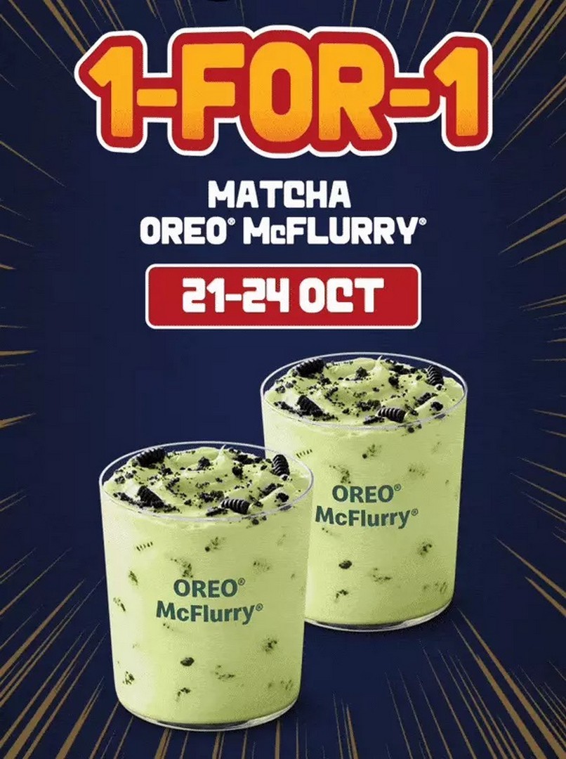 Timing is everything with these offers. The 1-for-1 Shoyu Mayo Samurai Chicken Burger is available during lunch hours from 11am to 4:59pm, Tuesday to Friday. On the other hand, the Matcha OREO McFlurry can be enjoyed any time of the day, from 12am to 11:59pm, across the same promotion period of 21–24 October.