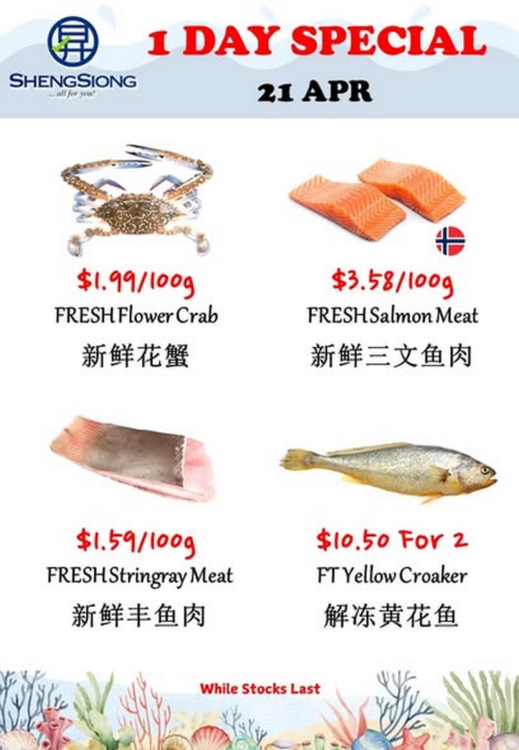 On 21 April 2026, Sheng Siong is highlighting one of those familiar crowd favourites again — its seafood specials. According to their latest update shared on their official Facebook page, shoppers are being invited to “dive into freshness” with selected seafood deals available while stocks last. The message is simple, but for regular shoppers, it signals something important: fresh seafood at accessible prices does not stay on the shelves for long.