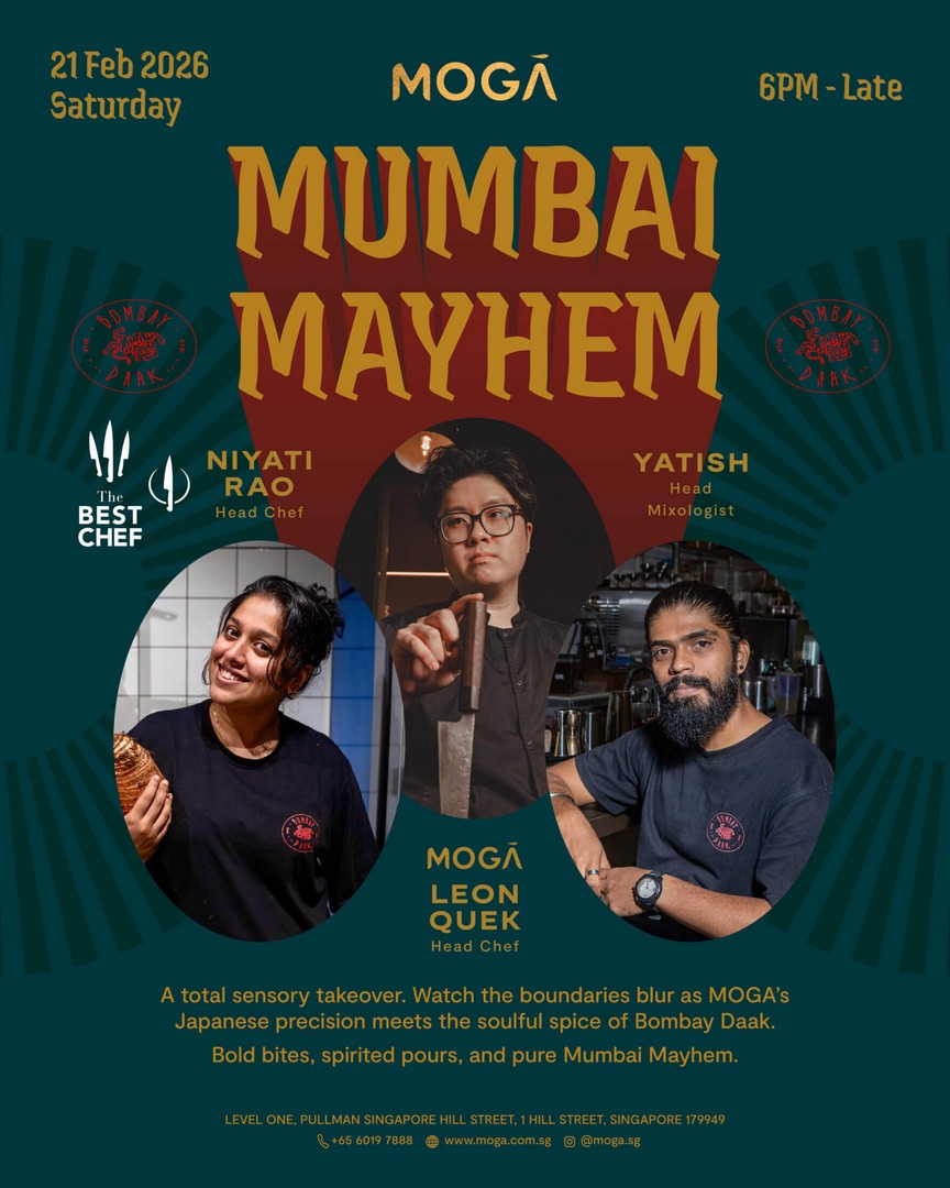 Singapore’s dining scene is about to get a serious dose of excitement on 21 February 2026, as MOGĀ presents a one-night-only culinary event that promises to be as bold as it is unforgettable. Dubbed “Mumbai Mayhem Guest Takeover”, this collaboration between MOGĀ and Bombay Daak is not your typical dining experience—it’s a celebration of daring flavours, masterful technique, and a lively, immersive atmosphere that will keep both foodies and cocktail enthusiasts talking long after the night ends.