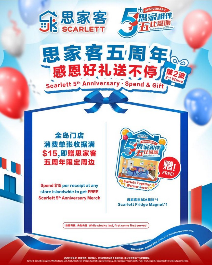 To celebrate five years of serving the community, Scarlett is offering a special Spend & Gift deal. Shoppers who spend at least $15 in a single receipt at any Scarlett outlet are eligible to receive a limited-edition 5th Anniversary fridge magnet, completely free. It’s a small but meaningful gesture that makes shopping at Scarlett even more enjoyable.