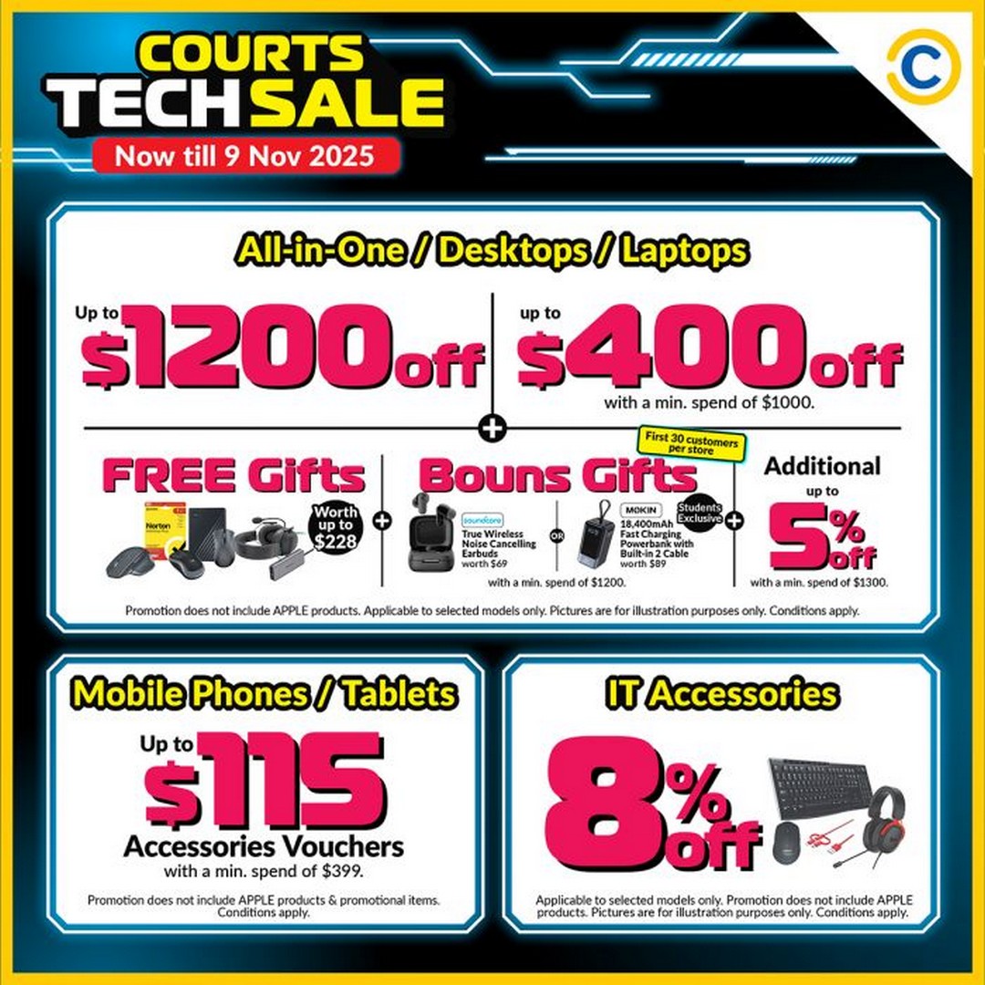 In summary, the Courts Tech Sale is not just a chance to grab gadgets at lower prices; it’s an opportunity to enhance their digital lifestyle, upgrade essential devices, and enjoy complimentary extras that make the purchase more rewarding. With deals spanning laptops, desktops, mobile phones, IT accessories, and smart home products, shoppers are sure to find exactly what they need, often at substantial savings.