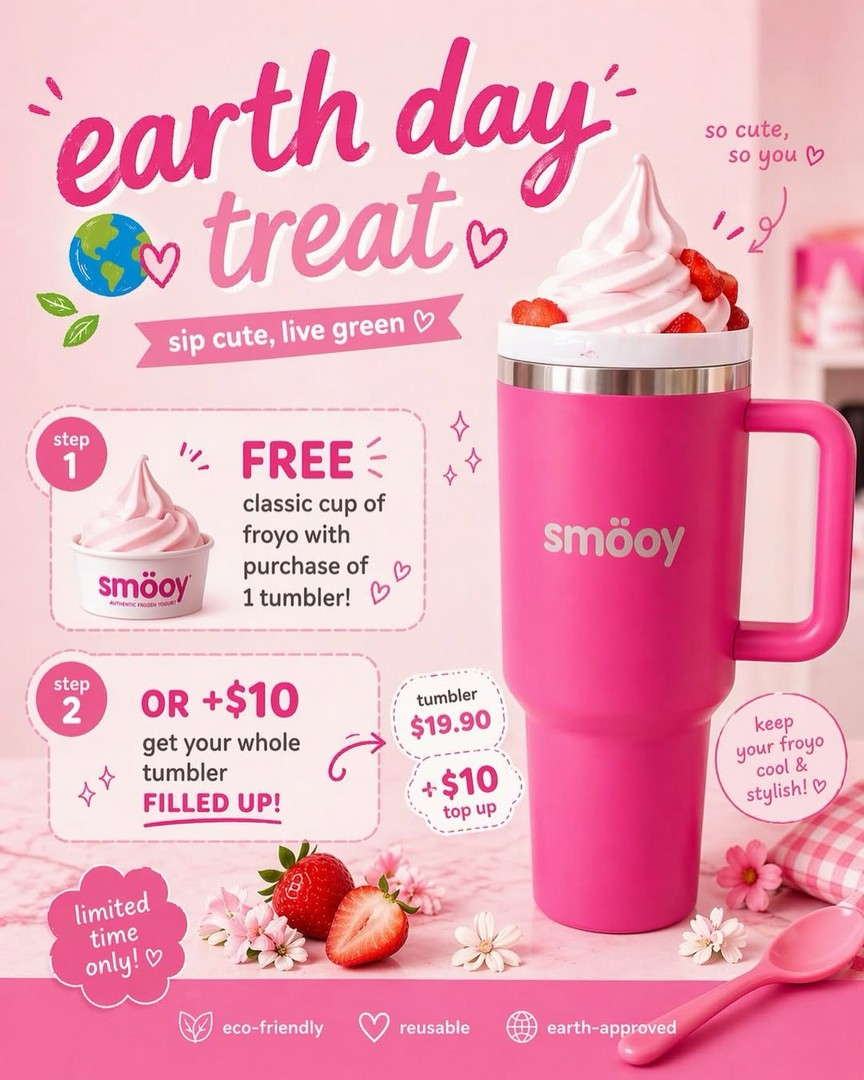 From 22 to 24 April 2026, Smooy Singapore is running a simple yet appealing promotion: purchase a tumbler and receive a FREE froyo. Yes, that means customers are not just buying a reusable tumbler—they are also walking away with a chilled treat at no extra cost. It is the kind of deal that feels small at first glance, but once considered carefully, offers real value, especially for those who appreciate both sustainability and dessert indulgence.