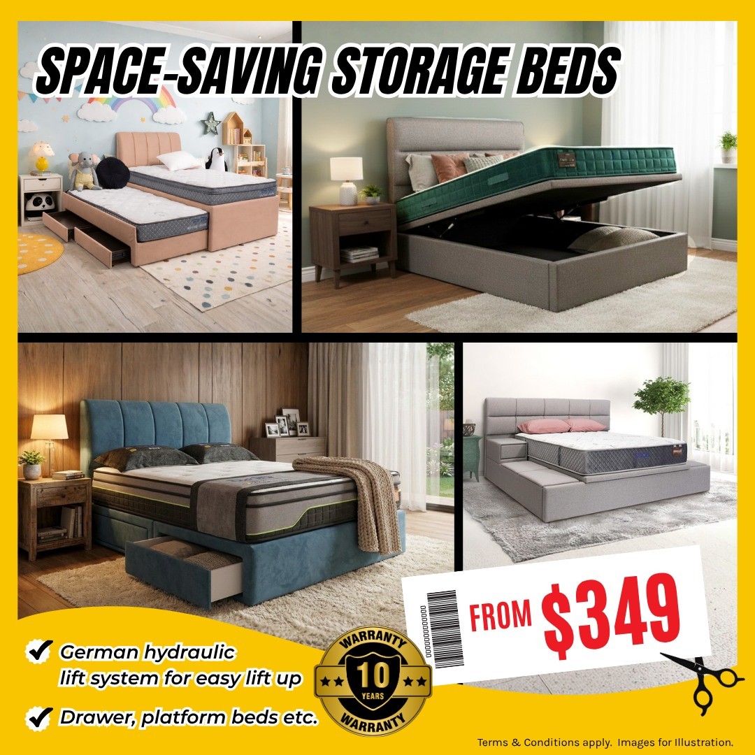 What makes this interesting is that the products are not low-grade or off-brand items. The selection includes pocketed spring mattresses, cooling mattress designs, and space-saving bedframes that are typically found in mid-to-premium collections.