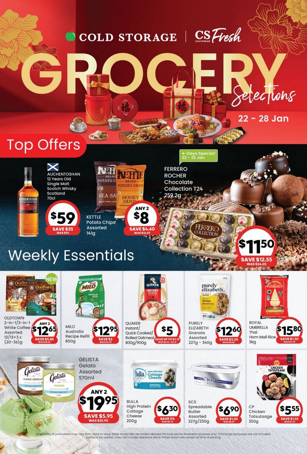 Wine enthusiasts will also find something to smile about. Auchentoshan 12 Years Old Single Malt Scotch Whisky (70cl) is now available for $59, down from $94. This $35 saving is ideal for those looking to enhance their home bar or prepare for gatherings. With these promotions, Cold Storage and CS Fresh are ensuring that premium indulgences remain within reach without breaking the budget.