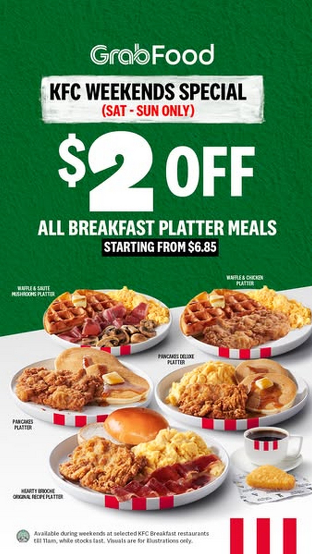 Weekends are usually when people want to slow down, treat themselves, and enjoy a leisurely breakfast. KFC understands this and has designed an equally enticing weekend promotion. On Saturdays and Sundays, all breakfast platters are offered with $2 off, with prices starting from just $6.85.