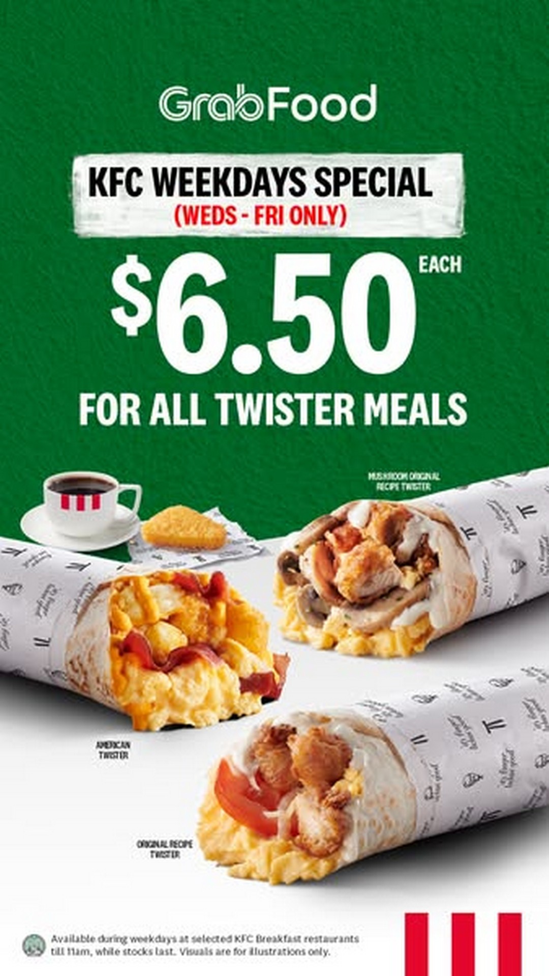 From Wednesday to Friday, KFC is bringing down the price of their Twister Meals to just $6.50 each. This deal is especially appealing for anyone who enjoys a combination of convenience and flavour.
