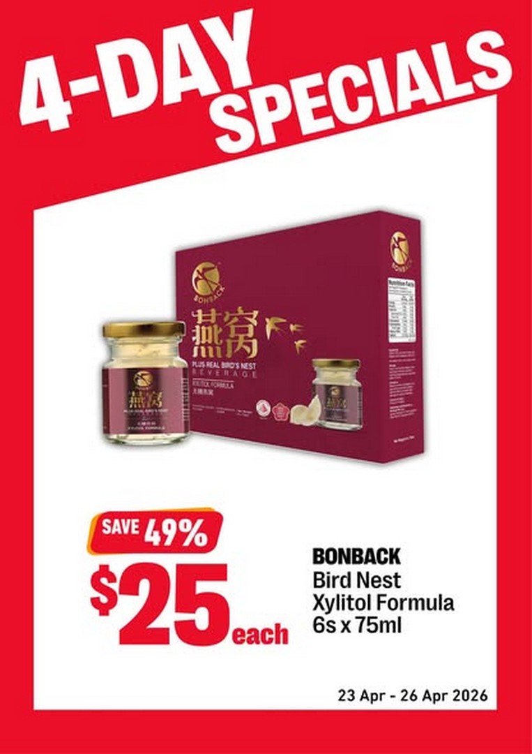 One of the highlights in this promotion is the Bonback Bird’s Nest Xylitol Formula (6s x 75ml) going at $25 each. Bird’s nest drinks are usually considered a premium wellness item in Singapore, often associated with gifting or personal health boosts. Seeing it at a fixed promotional price in a convenience store setting is not something that happens every day.
