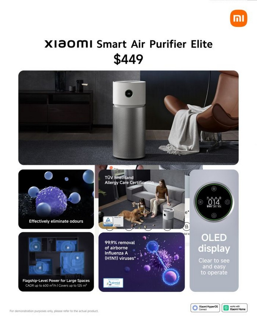 Next is the Xiaomi Smart Air Purifier Elite ($449), which focuses heavily on protection and safety. One of its standout features is its certified filtration performance, including high-efficiency removal of airborne viruses such as Influenza A (H1N1). For households with young children, elderly parents, or anyone with respiratory sensitivities, this model is designed to provide an added layer of reassurance.