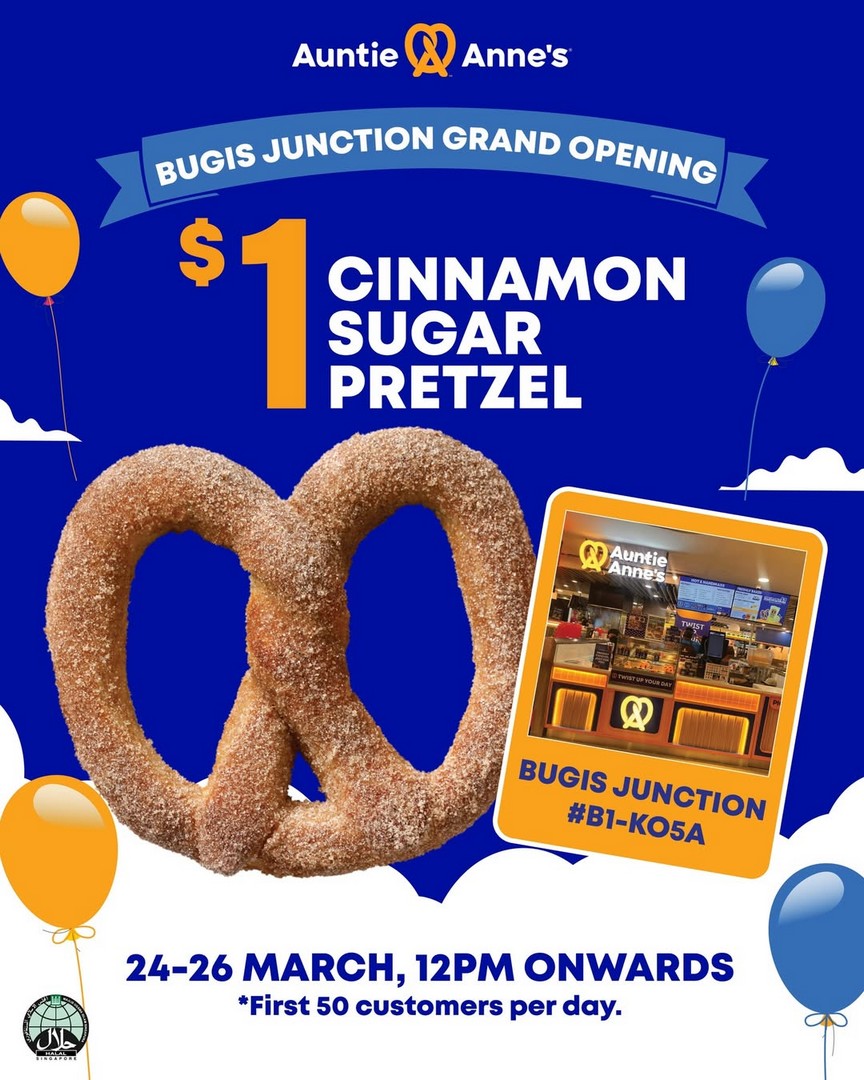 For three days only, from 24 to 26 March 2026, they are offering their signature Cinnamon Sugar Pretzels at just $1 each. Yes, that is not a typo. One dollar for a warm, freshly baked pretzel that is usually known for its soft texture and sweet, comforting flavour. However, there is a small catch, and it is exactly what makes this deal even more exciting. The promotion is limited to the first 50 customers each day, which means those who want to enjoy this bargain will need to arrive early and be prepared to queue.