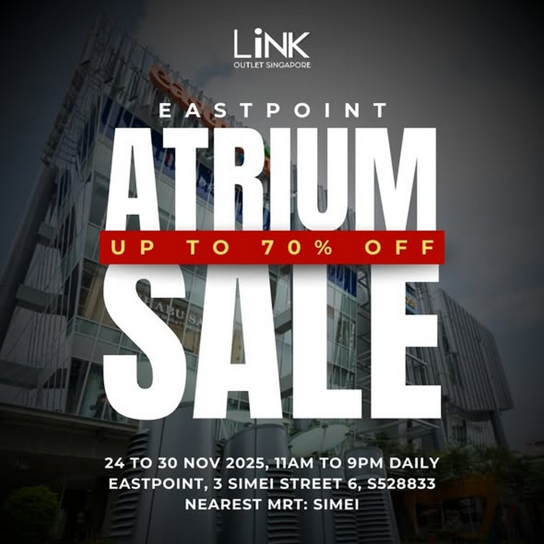 If there is one thing shoppers in Singapore look forward to towards the end of the year, it is the exciting line-up of sales popping up across the island. The festive period always brings with it a celebratory spirit, and naturally, many people begin scouting for bargains on clothing, footwear and accessories, especially when they know that prices are at their most attractive. This year, those living in the east – or simply anyone who loves a good deal – will be pleased to discover that LINK Outlet Store Singapore is running a major Atrium Sale at Eastpoint Mall, offering discounts of up to 70 per cent.