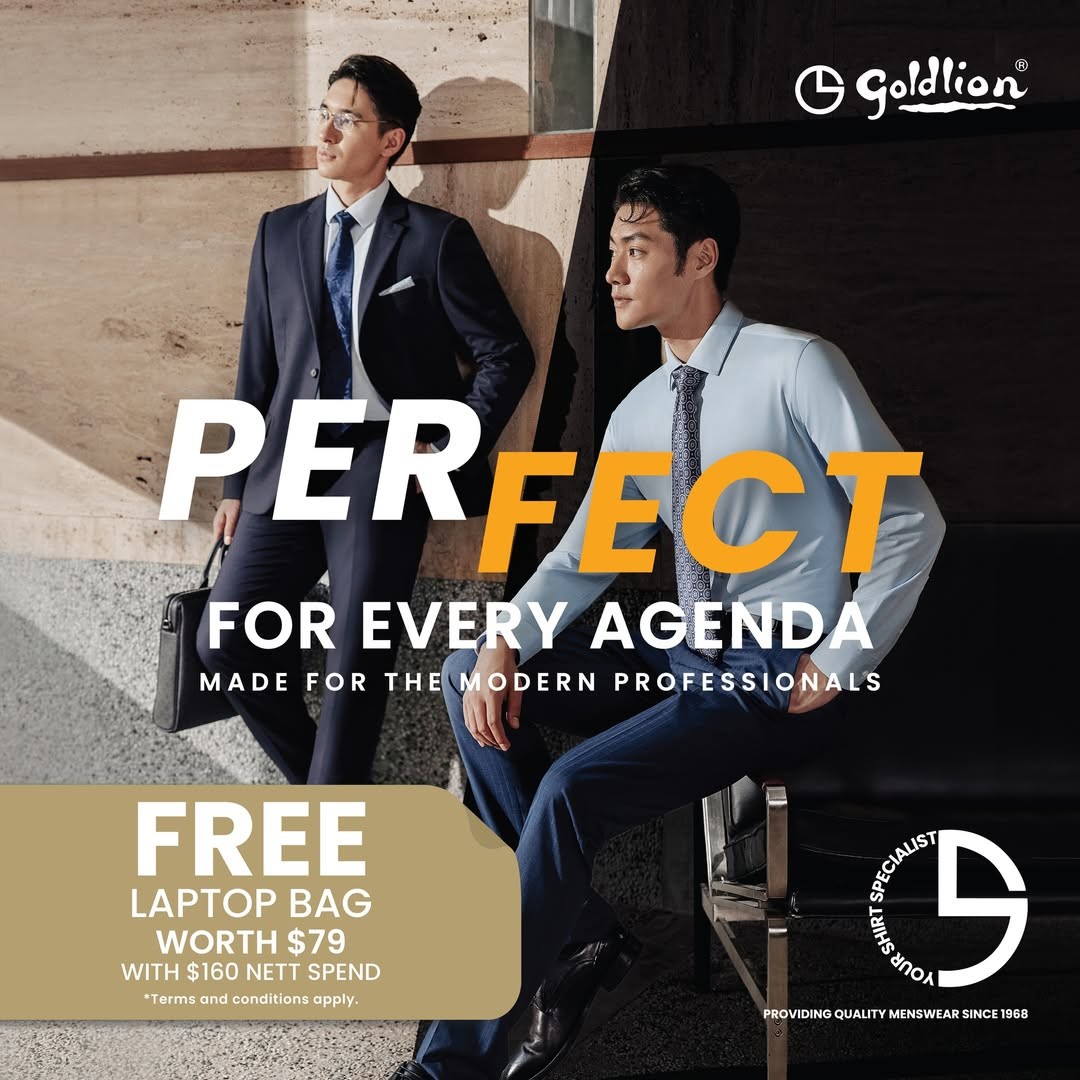 From 24 April to 5 May 2026, shoppers will be entitled to receive a FREE laptop bag worth $79 when they spend $160 nett on Goldlion items. The promotion is available at BHG Bugis Junction, Level 2, and it is strictly for a limited period only.