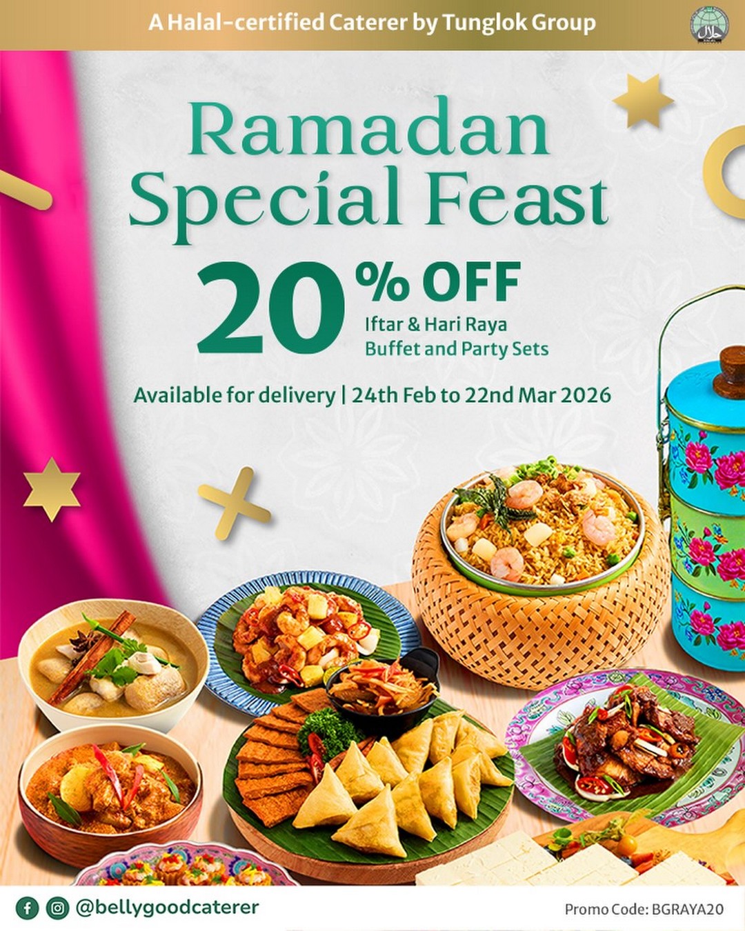 The festive season is upon us, and for many, it’s a time of joy, reflection, and most importantly, gathering with family and friends over delicious food. This year, Singaporeans looking to celebrate Ramadan and Hari Raya in style have a particularly enticing reason to plan their festive feasts early. BellyGood Caterer is offering a special Ramadan promotion, giving diners and hosts alike the opportunity to enjoy 20% OFF their festive menus from 24 February to 22 March 2026.