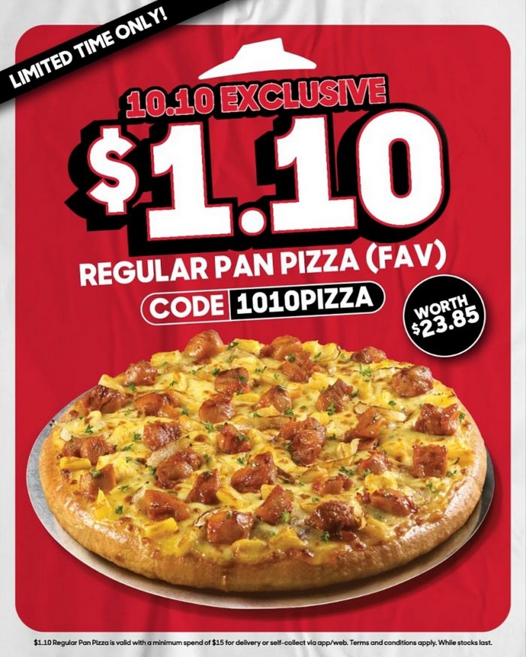 Pizza lovers, it’s time to mark your calendars! Pizza Hut Singapore is turning up the excitement for the 10.10 sale with an unbeatable offer that’s too good to pass up. From 24 September to 12 October 2025, Pizza Hut is offering a Regular Pan Pizza for just $1.10 when you use the promo code 1010PIZZA. Normally priced at $23.85, this is a deal that can make anyone smile.