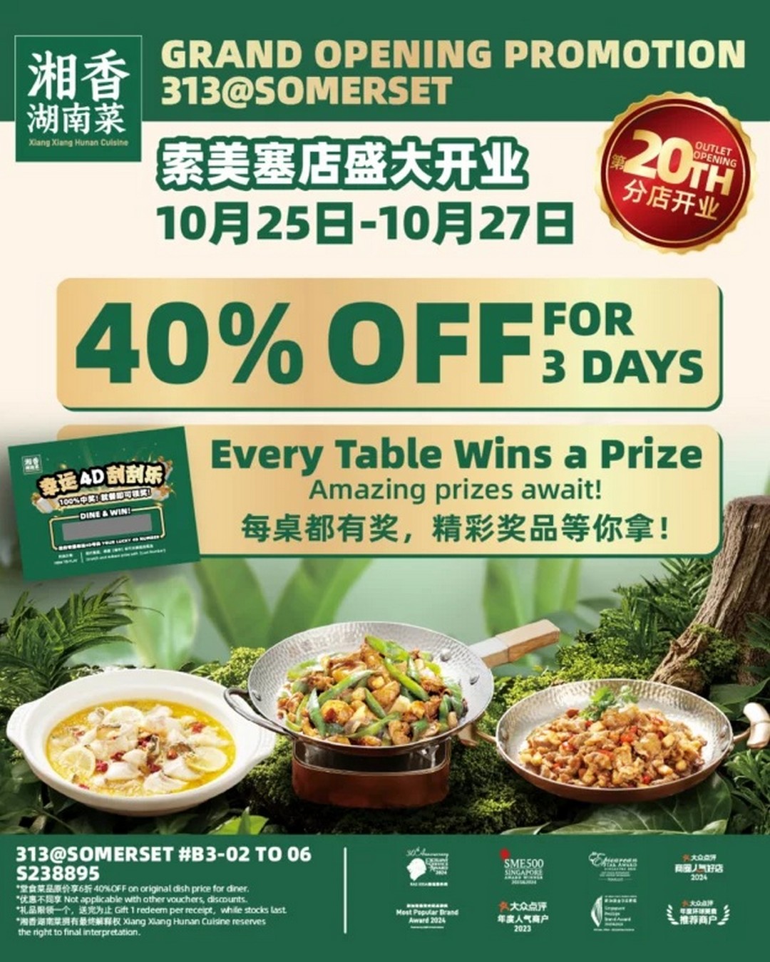 Adding extra excitement to the grand opening, every table will participate in a sure-win scratch-and-win draw. Rewards range from free meals to $30 dining vouchers and exclusive Xiang Xiang merchandise. It’s a fun and engaging way to celebrate the launch while enjoying authentic Hunan cuisine.