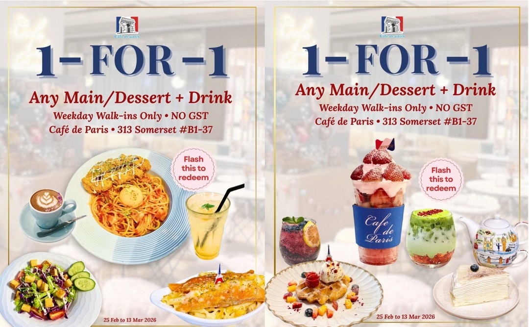 If you’ve been looking for a reason to plan a casual lunch outing, an after-work catch-up, or even a midweek treat just for yourself, Café de Paris has a deal that is hard to resist. From 25 February to 13 March 2026, this French-inspired café is offering a fantastic 1-FOR-1 promotion on any main course or dessert when paired with a drink. That’s right — two mains or two desserts for the price of one, provided one comes with a drink.