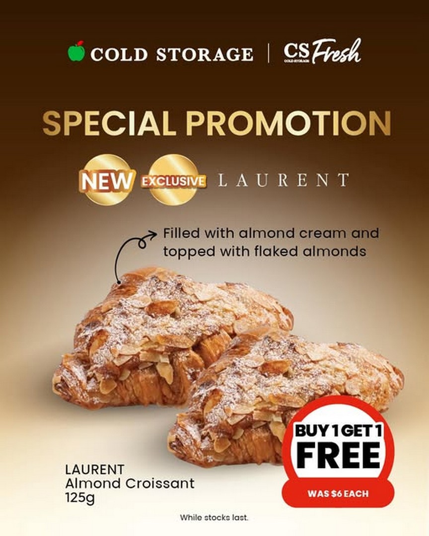 For anyone who loves starting their day with a perfectly baked treat, Cold Storage Singapore has just the deal that will make mornings something to look forward to. From 25 February 2026 onwards, bakery lovers can indulge in the irresistible Buy 1 Get 1 Free promotion on Laurent almond croissants. These croissants are known for their buttery, flaky layers, with a delicate almond filling that strikes the perfect balance between sweet and nutty.