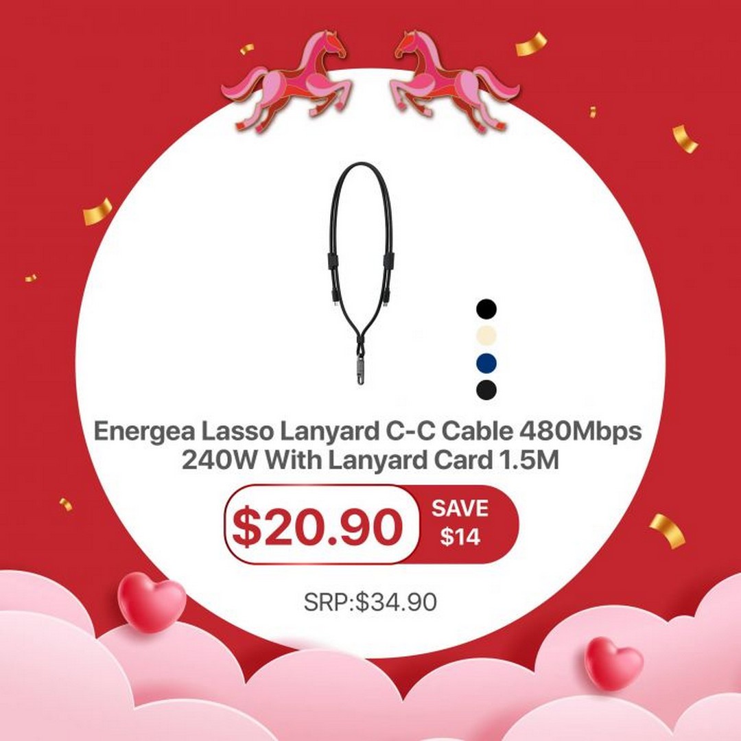 Take the Energea Lasso Lanyard C-C Cable 480Mbps 240W (1.5m), now $20.90 (usual $34.90). A 240W USB-C cable is not only for phones but also for laptops and higher-powered devices. The lanyard design makes it convenient to carry, especially for those who are constantly on the move between meetings, co-working spaces or campuses.