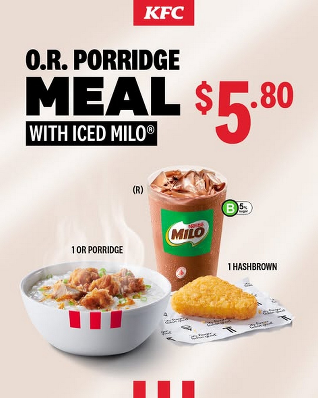 From 25 March 2026 onwards, they are offering their Breakfast Bowl Meals at just $5.80, giving customers a choice between two comforting options: Chicken Macaroni Soup or their signature Original Recipe Porridge. Each meal is thoughtfully paired with a hash brown and comes with a free upgrade to a regular iced MILO, making it a complete breakfast set that feels both indulgent and practical at the same time.