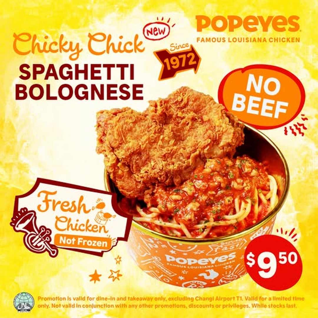 If there is one thing that keeps the food scene in Singapore constantly exciting, it is how familiar favourites continue to evolve with new and unexpected twists. This time, Popeyes Singapore is stepping in with something that blends comfort food with their signature fried chicken expertise. Introducing their latest creation – the Chicky Chick Spaghetti Bolognese Pasta Bowl, now available from 25 March 2026 onwards, starting from just $9.50.
