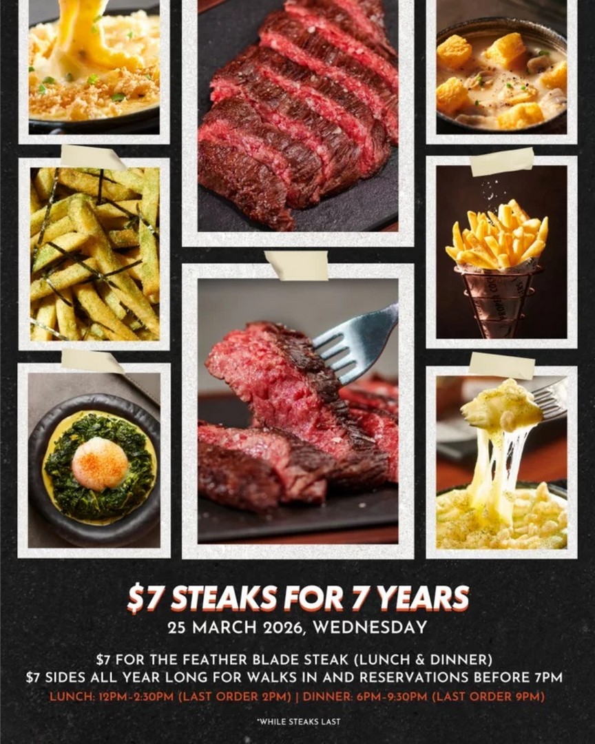 For one day only, on 25 March 2026, diners have the rare chance to enjoy their well-loved signature feather blade steak for just $7. In a city where a proper steak meal can easily set someone back several times that amount, this is the kind of midweek treat that is difficult to ignore. It is simple, straightforward, and designed to celebrate their journey with the people who have supported them over the years.