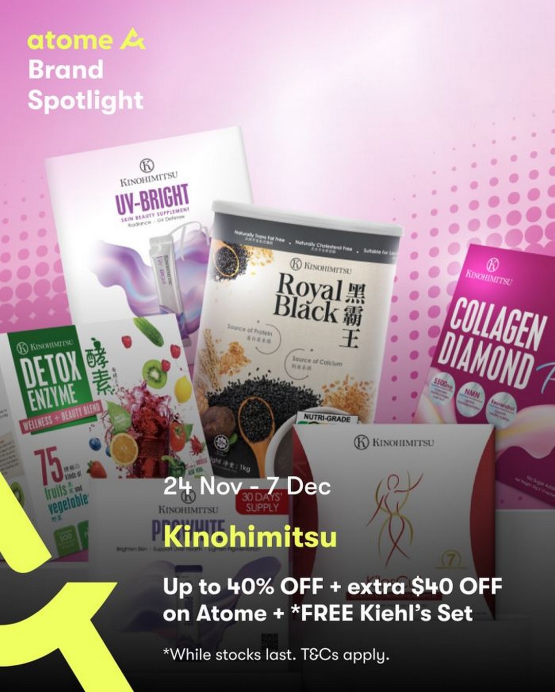 Don’t miss the chance to secure premium wellness products at up to 40% off, get an extra $40 off via Atome, and receive a complimentary Kiehl’s Set. Act fast, as this festive offer is only available while stocks last, and the promotion period is limited. Make this Christmas season a little brighter with smart, cost-effective shopping from Kinohimitsu.