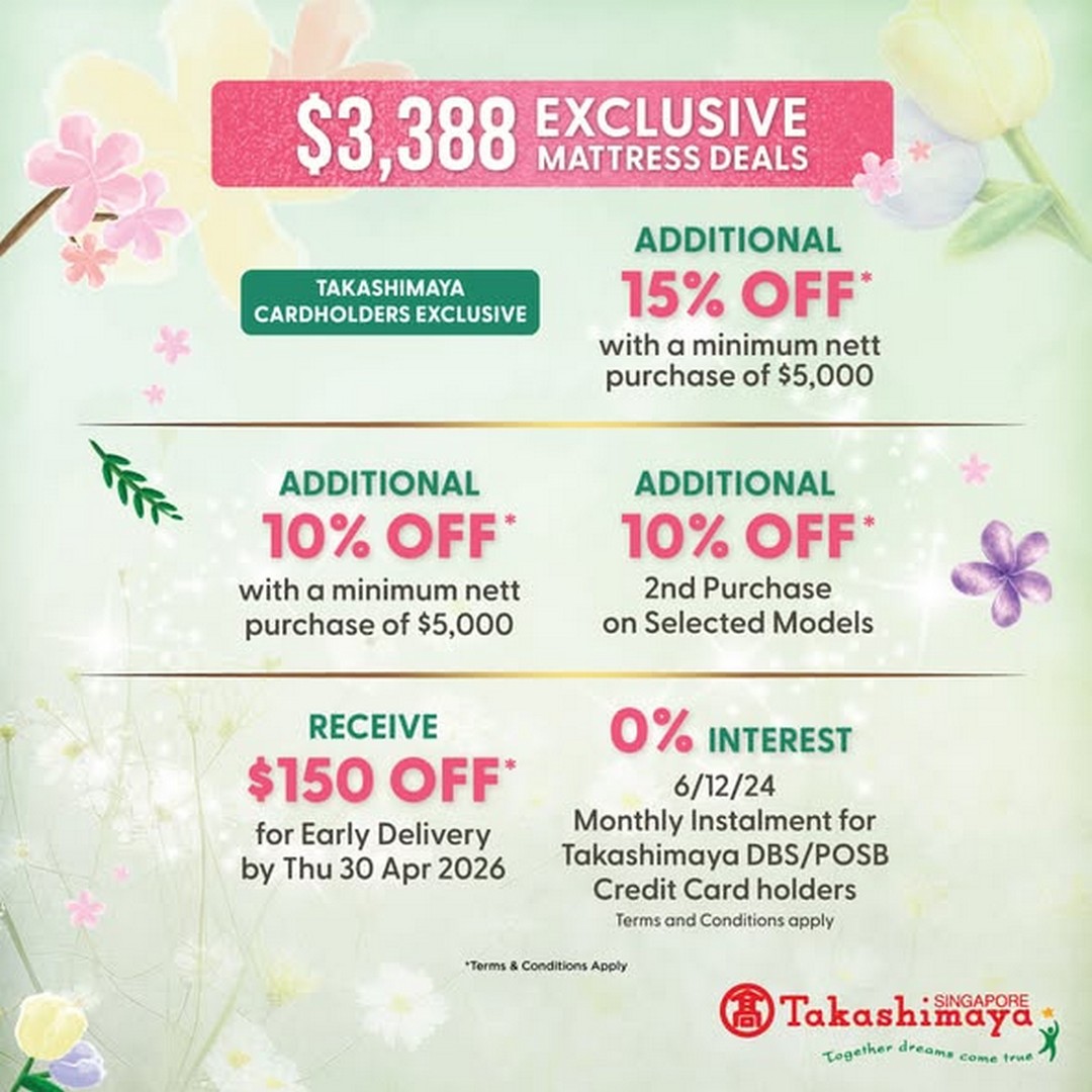 In short, the Takashimaya mattress promotion from 26 to 29 March 2026 is an opportunity that should not be overlooked. The combination of premium brands, exclusive pricing, gift incentives, and loyalty rewards makes it one of the most compelling promotions of the season. Shoppers can walk away with a mattress that promises comfort and support, a complimentary gift, and a wealth of Bonus Points that can be redeemed for future purchases. It’s a deal that balances luxury, practicality, and value—all in one package.