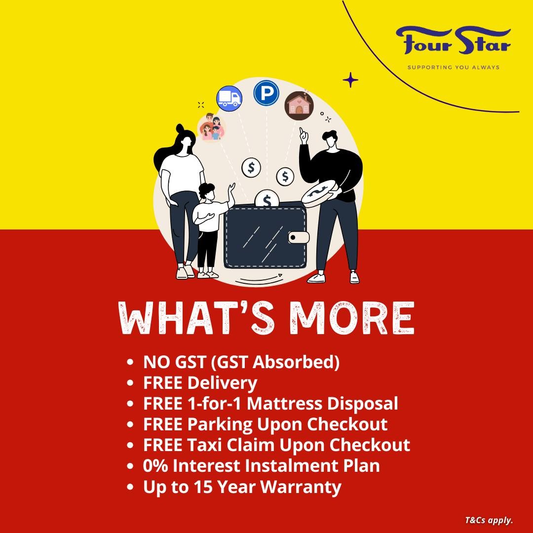 Four Star has also included storage beds and bedframes in the line-up, beginning from just $299. With space being such a premium in Singapore flats, storage beds remain a popular solution for maximising room usage. This promotion gives buyers a good opportunity to pick up stylish and functional options at a fraction of their usual cost.