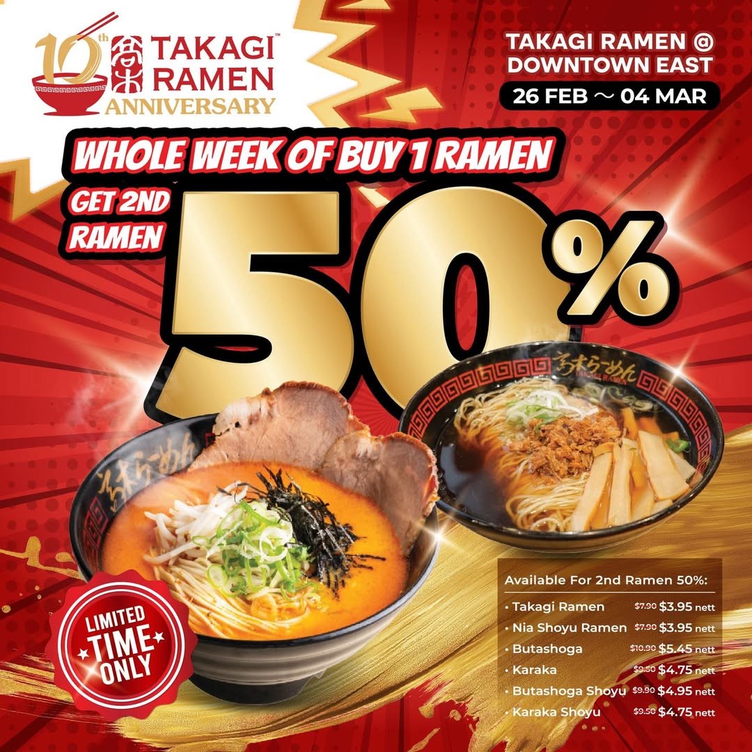 Ramen lovers in Singapore, it’s time to rejoice! Takagi Ramen is rolling out a mouth-watering deal that’s bound to make anyone’s day a little brighter and definitely tastier. From 26 February to 4 March 2026, patrons at Takagi Ramen Downtown East can enjoy a special promotion: buy one bowl of ramen and get the second at half price. For anyone who has ever had a craving for those rich, flavourful broths, perfectly cooked noodles, and the delicate balance of toppings, this is an opportunity that shouldn’t be missed.
