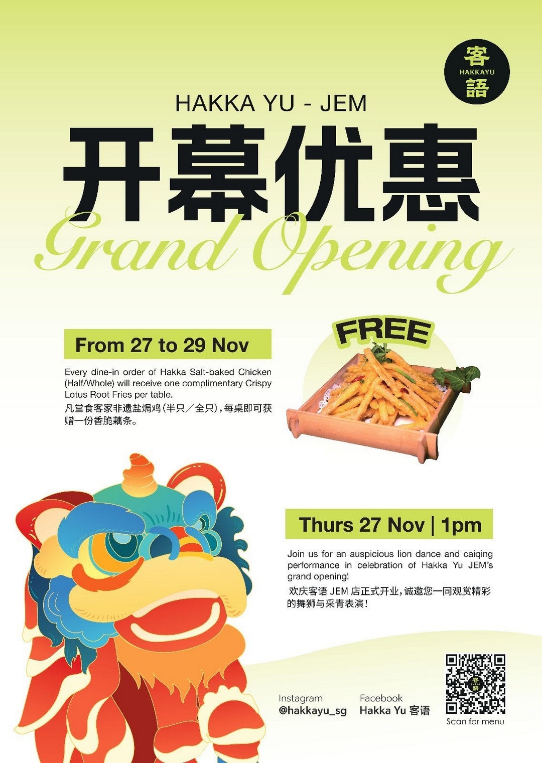 Promotions that offer both value and experience do not come by every day. With Hakka Yu’s opening special at JEM, diners can enjoy traditional comfort food, receive a complimentary dish that highlights Hakka ingredients, and witness a vibrant cultural performance. Whether you are already a fan of Hakka cuisine or simply looking for a new place to enjoy a hearty meal, this is a deal that feels rewarding from the moment you step in.
