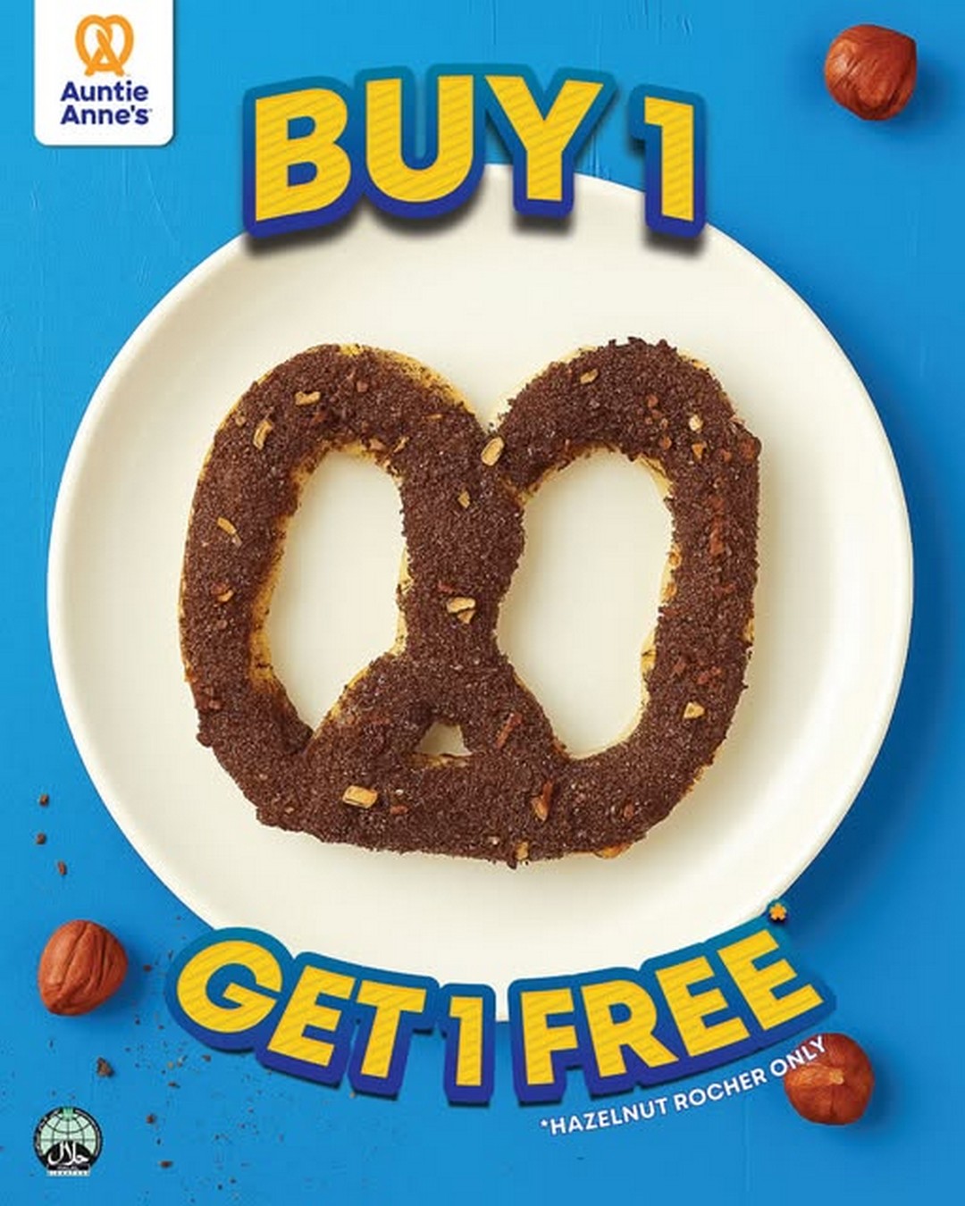 For those who are fans of novelty flavours and limited-time offers, this Hazelnut Rocher Pretzel promotion is also exciting because it provides something different from the regular menu. While Auntie Anne’s has a wide range of classic pretzel flavours, this chocolate-hazelnut combination is indulgent and perfect for anyone who enjoys sweet treats. It’s an opportunity to try something new, and with the Buy 1 Get 1 Free deal, they can sample it without committing to just one serving.