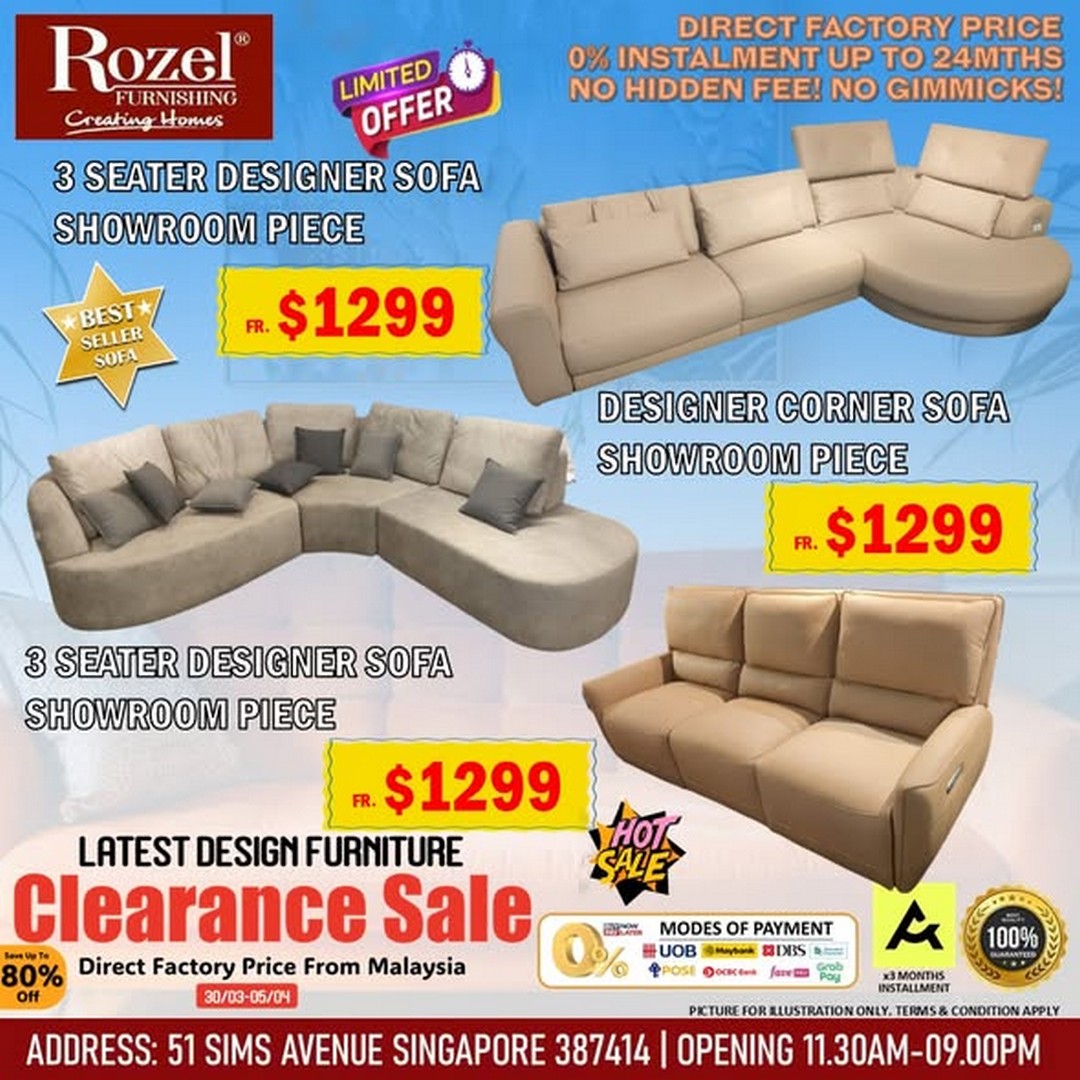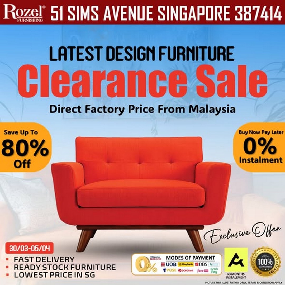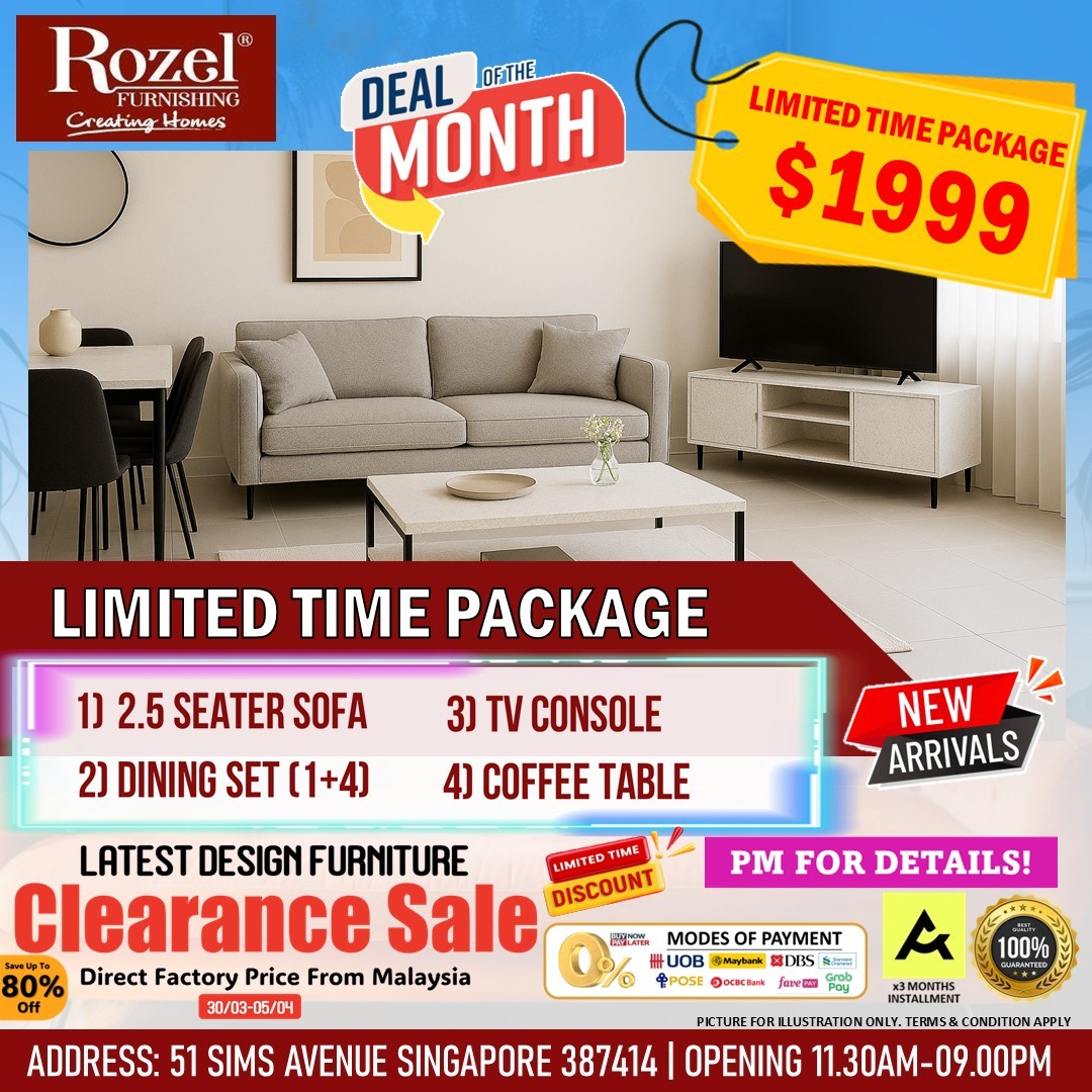 If you’ve been waiting for the perfect time to refresh your home with stylish, high-quality furniture without breaking the bank, then Rozel Furnishing at 51 Sims Avenue is making it impossible to resist. From 27 March 2026 onwards, this well-known furniture store is running a comprehensive Latest Design Furniture Clearance Sale, featuring unbeatable prices, exclusive free gifts, and even a lucky draw for shoppers.