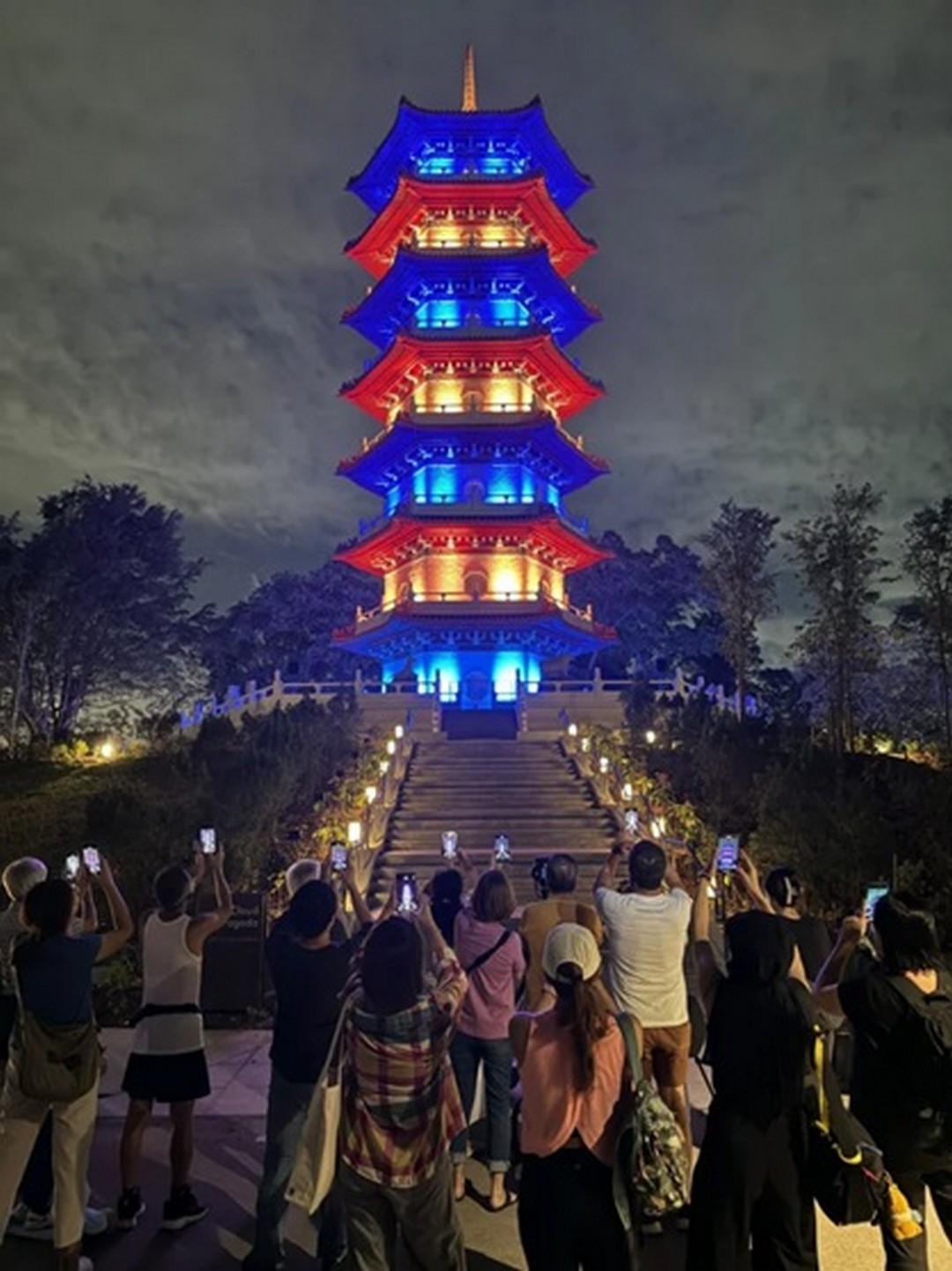 The shows run every 30 minutes from 7.30pm to 10pm daily, offering multiple chances for guests to catch the performance. The Cloud Pagoda is located within the Chinese Garden, which is easily accessible from Chinese Garden MRT station.