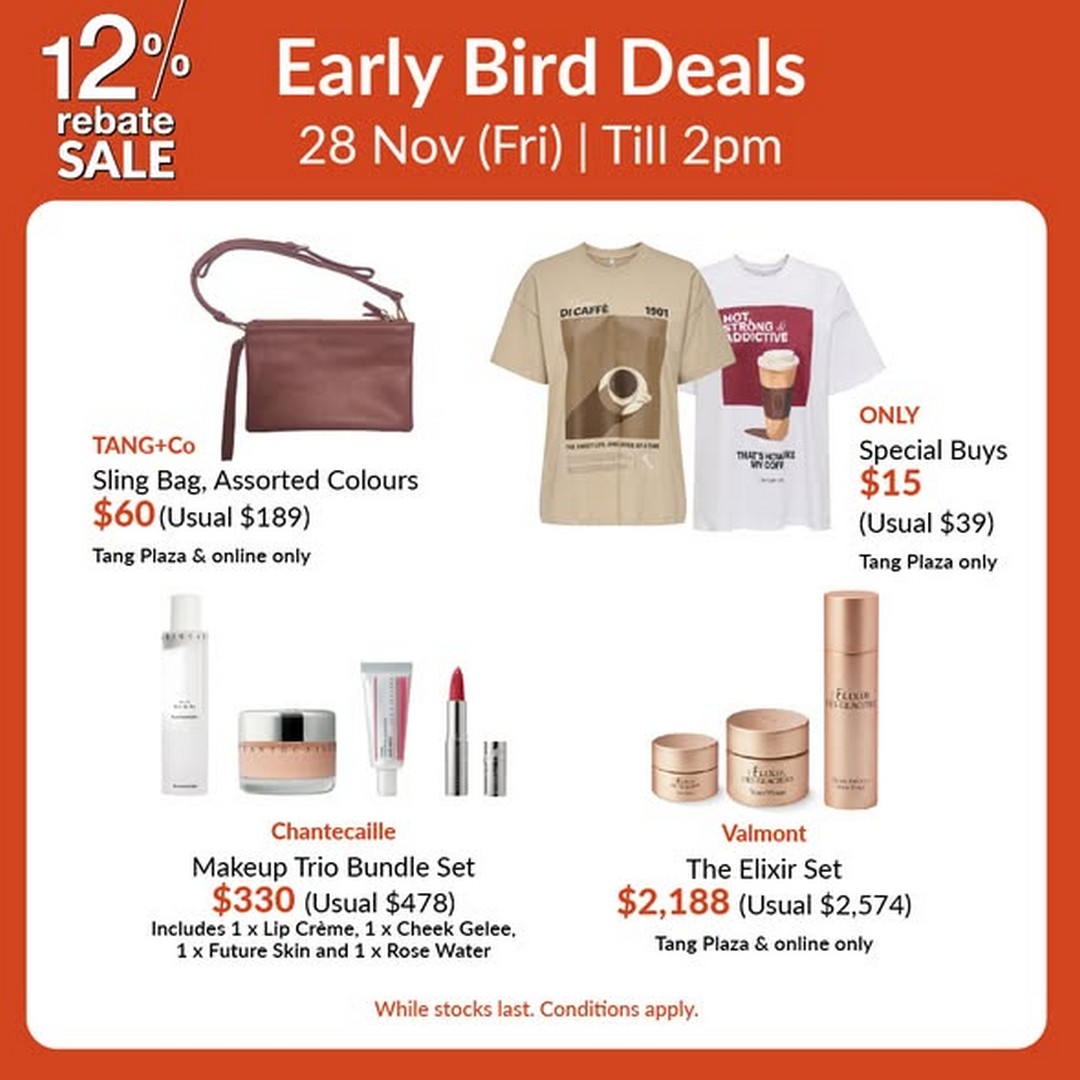 TANGS is known for its quality products and reliable customer service. This Black Friday, shoppers can expect a well-curated selection of items, from fashion apparel to accessories, beauty essentials, and home décor. Seasonal favourites are likely to fly off the shelves quickly, so early arrival or prompt online checkout is highly recommended.
