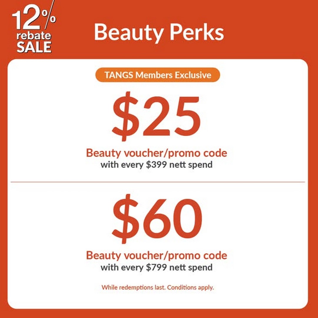 Exclusive Member Perks: 12% upsized rebate for TANGS Members adds extra savings.