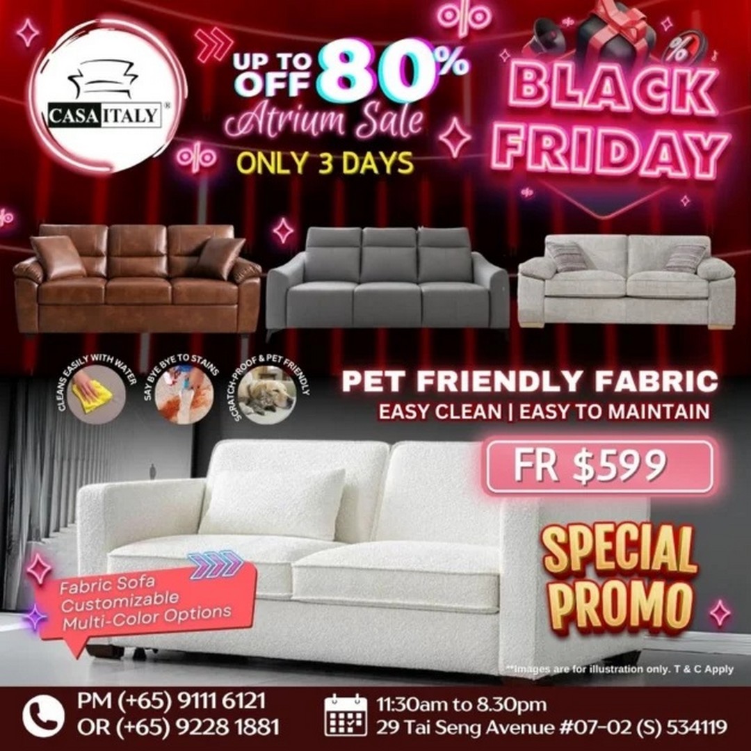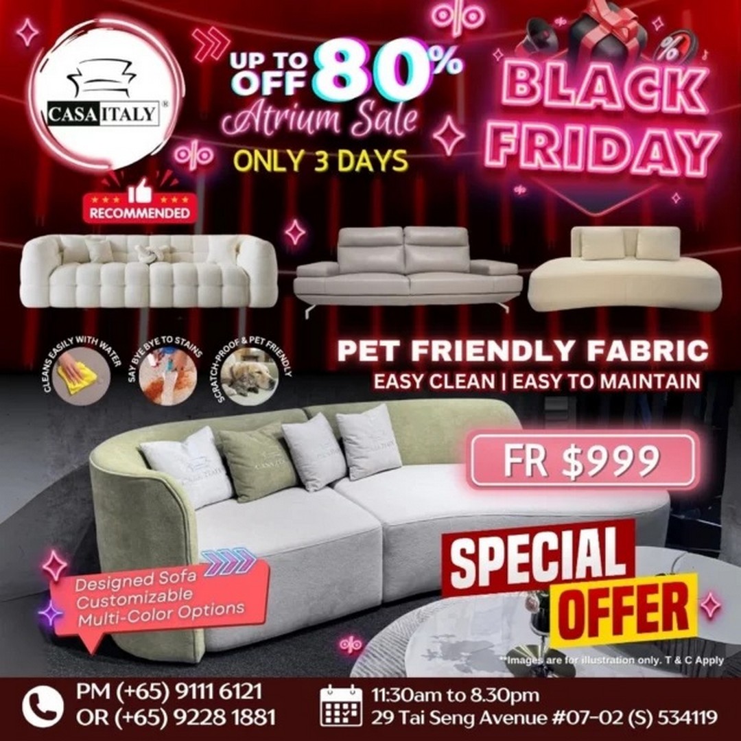 Don’t miss out on one of Singapore’s biggest Black Friday furniture events. With incredible discounts, customisable options, and guaranteed gifts, Casa Italy is making it easier than ever to upgrade your home for less.