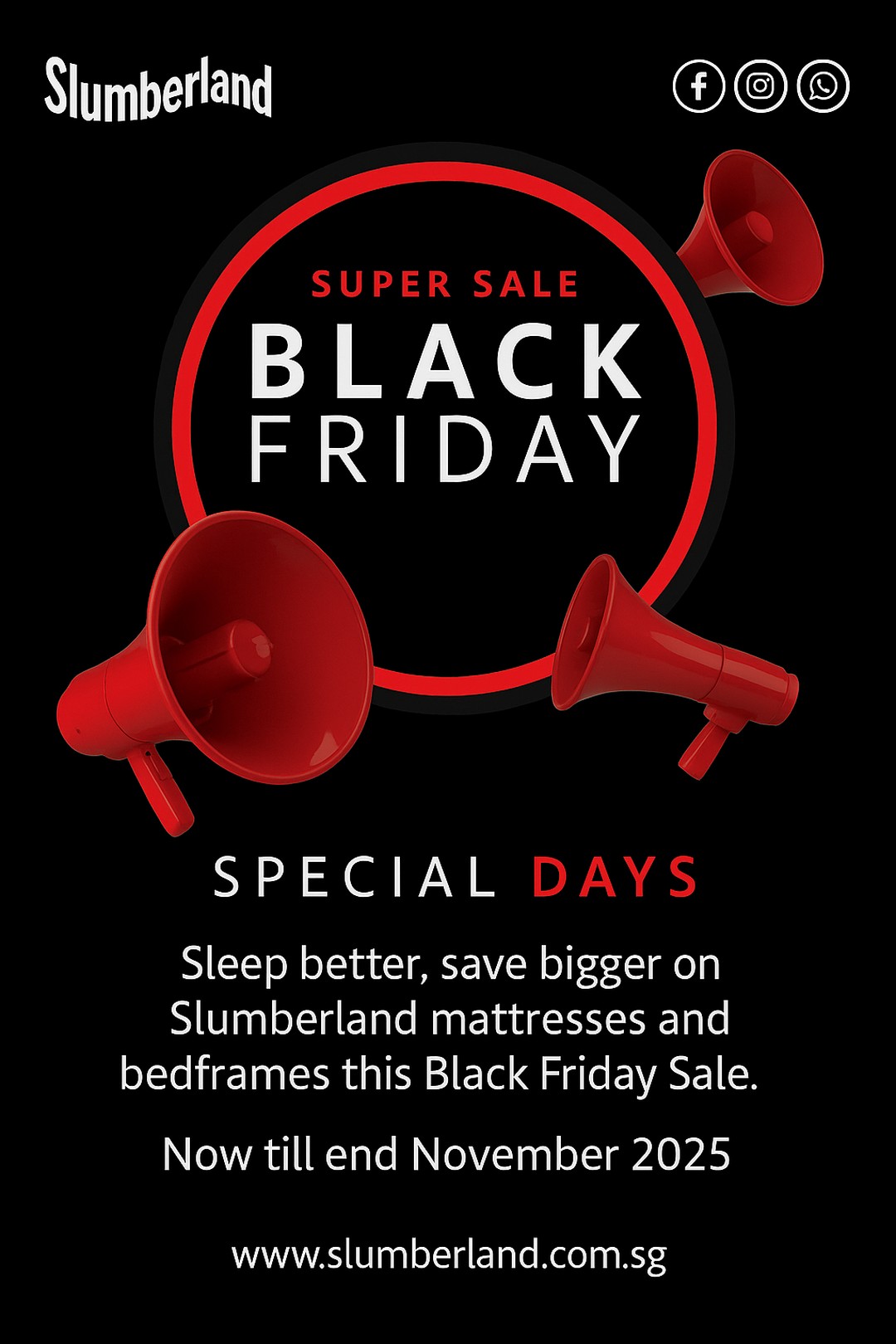 For those who favour world-renowned sleep comfort, JL Homes is featuring selected Slumberland mattresses at special Black Friday prices. Known globally for their premium quality and long-lasting support, Slumberland mattresses deliver that luxurious, hotel-quality sleep experience — without the hotel price.