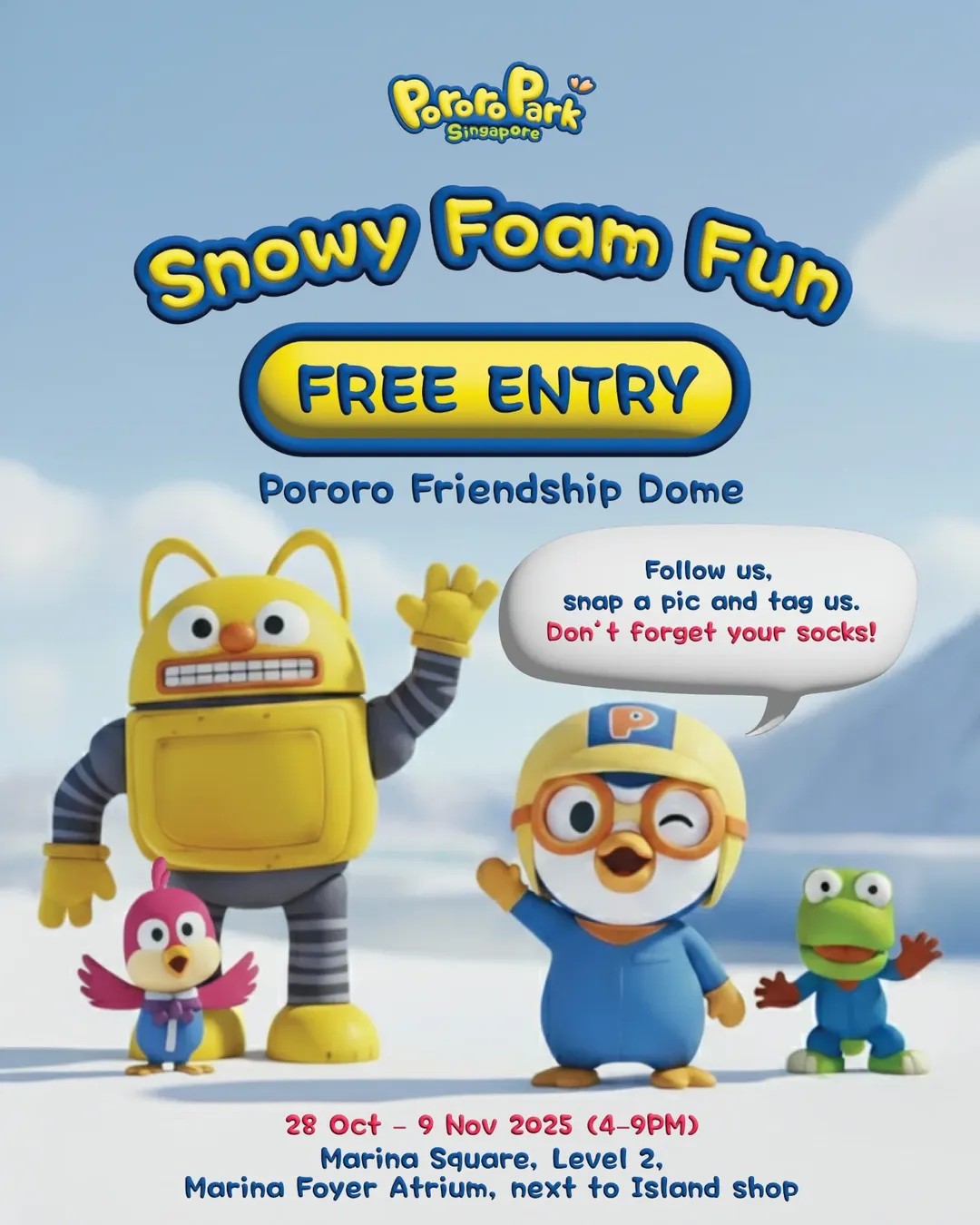 For anyone who has ever enjoyed the cheerful adventures of Pororo, this is a perfect chance to step into the world of your favourite characters. The dome, located at Level 2, Marina Foyer Atrium, next to Island Shop, will transform into a playful winter wonderland where kids can explore, interact, and make lasting memories. From the moment you step inside, the dome is designed to capture the magic of friendship and the fun of snowy adventures, all while remaining safe and accessible for families visiting Singapore.