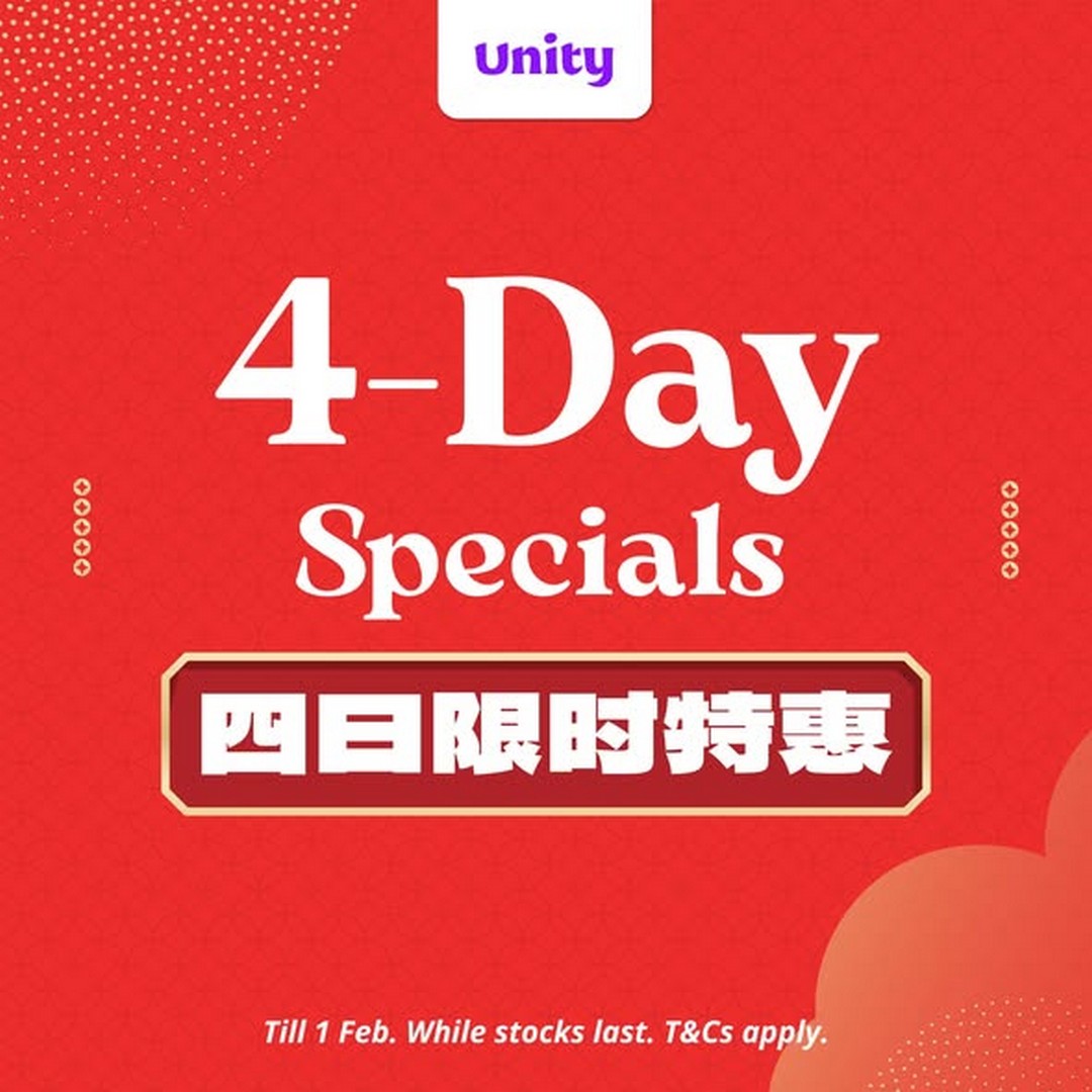 Singapore shoppers who love to stock up on their favourite health and wellness products will be delighted to hear that Unity Pharmacy has returned with its popular 4-Day Special promotion. From 29 January to 1 February 2026, Unity is offering up to 61% off on selected health and wellness favourites, making it a perfect opportunity to get essentials at unbeatable prices. This is not just any sale—it’s a carefully curated collection designed to help shoppers prepare for the Lunar New Year while caring for their health.