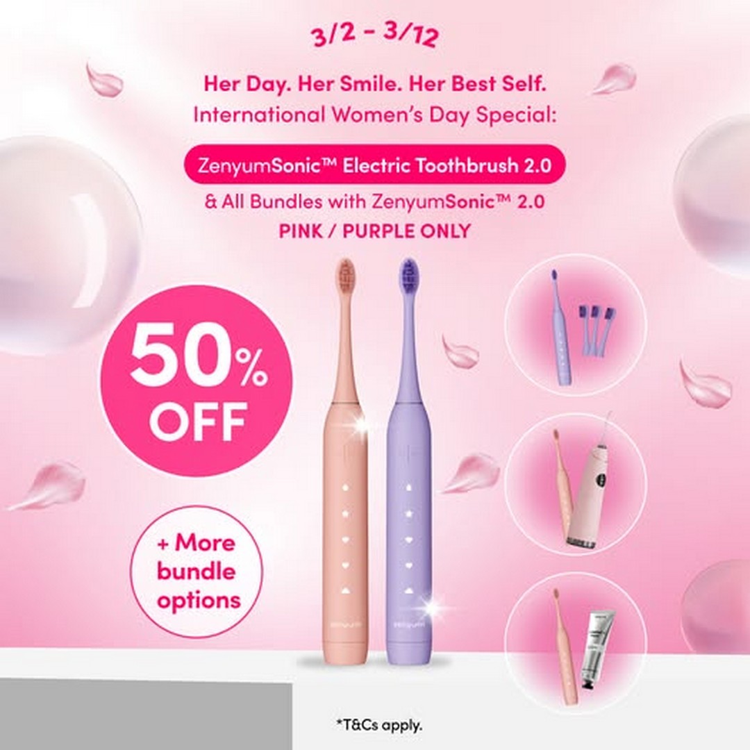 In summary, the Zenyum International Women’s Day promotion is more than just a discount—it’s an invitation to pause, prioritise self-care, and celebrate the women who make a difference in their lives. With 50% off on the Pink & Purple ZenyumSonic™ Electric Toothbrush and selected bundles, they can enjoy premium oral care while marking a day dedicated to empowerment, reflection, and recognition. It’s a thoughtful, stylish, and practical way to invest in themselves or show appreciation for someone important. From convenience to quality, this promotion checks all the boxes, making it a must-visit sale this International Women’s Day.