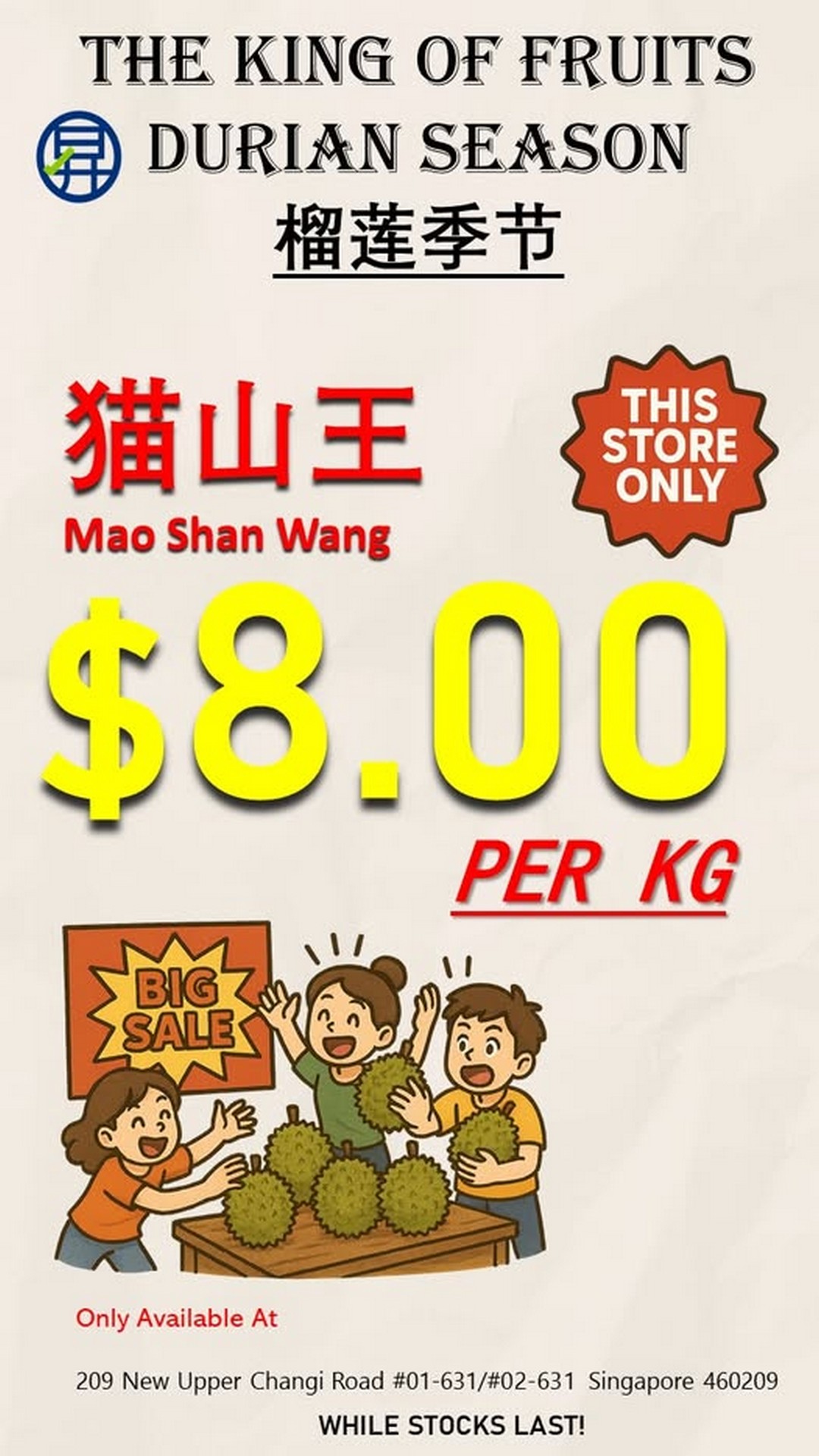 At $8 per kilogram, stocking up on Mao Shan Wang becomes an affordable treat rather than an occasional luxury. For families who enjoy durian together, this is a deal that stretches their dollar further while still enjoying one of the best varieties available.
