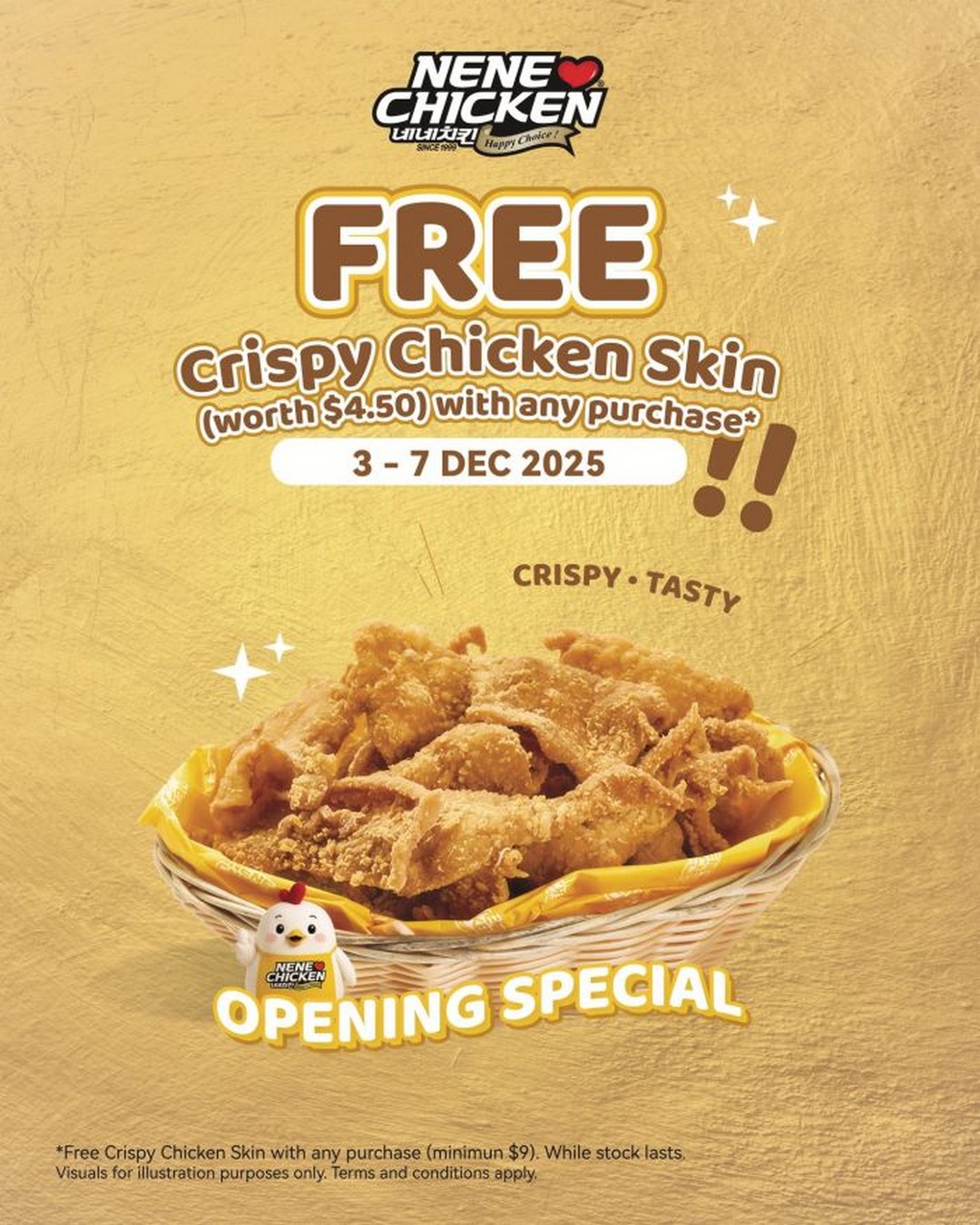 Singaporeans love a good food deal, and for those who appreciate crispy, flavour-packed chicken, NeNe Chicken has just made Clementi a new hotspot. From 3 to 7 December 2025, NeNe Chicken at Clementi is officially opening its doors, and they’ve got a special treat for the community: a free crispy chicken skin with any purchase of $9 or more.