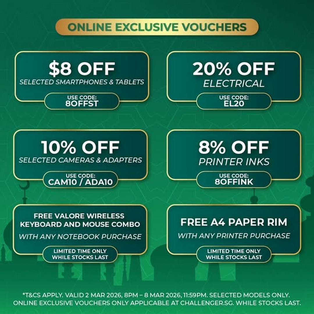 You can explore the full range of deals and apply the voucher codes directly by visiting Challenger Singapore’s official online store here: Challenger Hari Raya 3.3 Online Sale.
