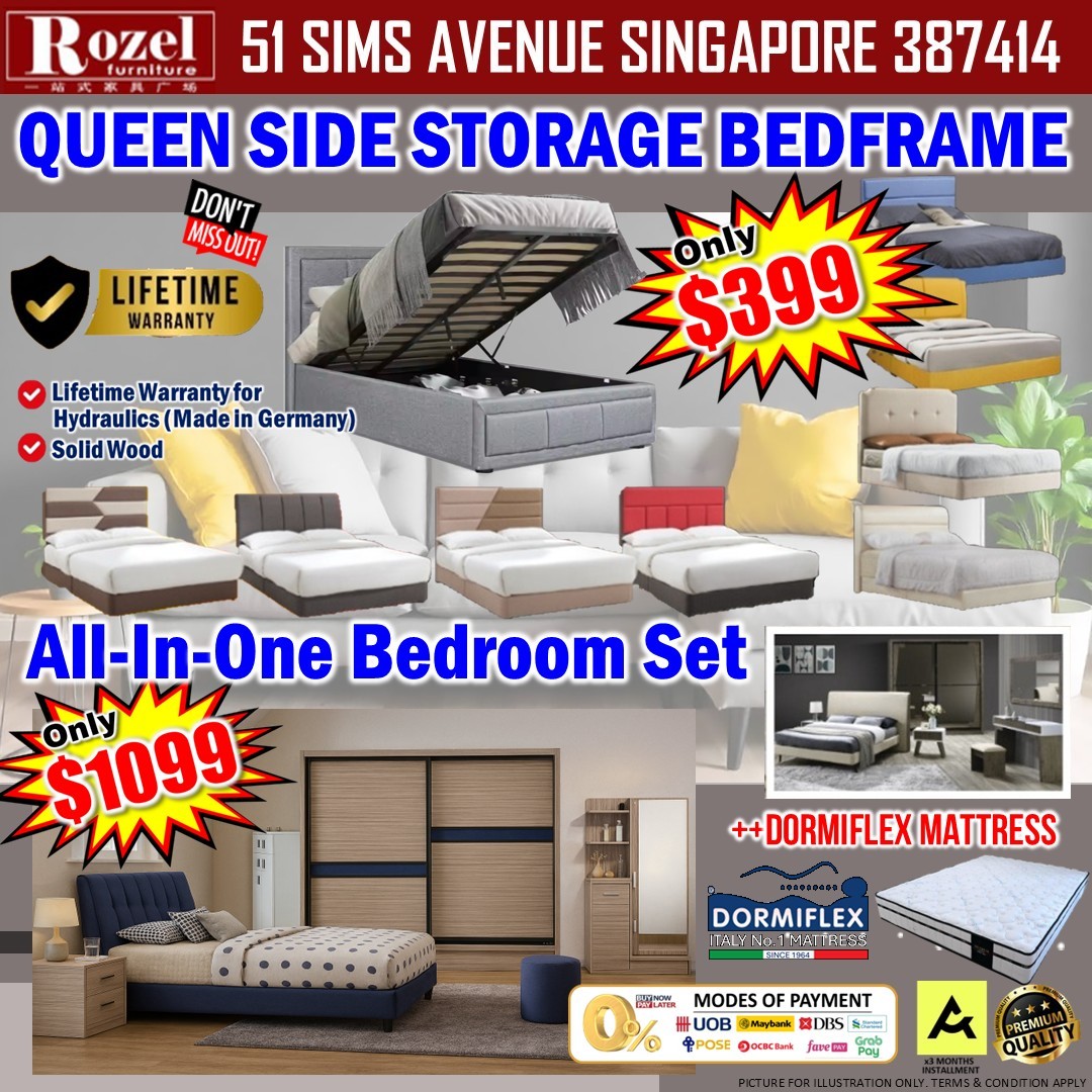 If you’re furnishing your bedroom, there are equally attractive offers: Queen Mattress and Bedframe sets from $399, 5-in-1 Bedroom Sets from $599, and even Customisable Wooden Wardrobes from $299. With such variety, there’s something for every taste, every home size, and every budget.