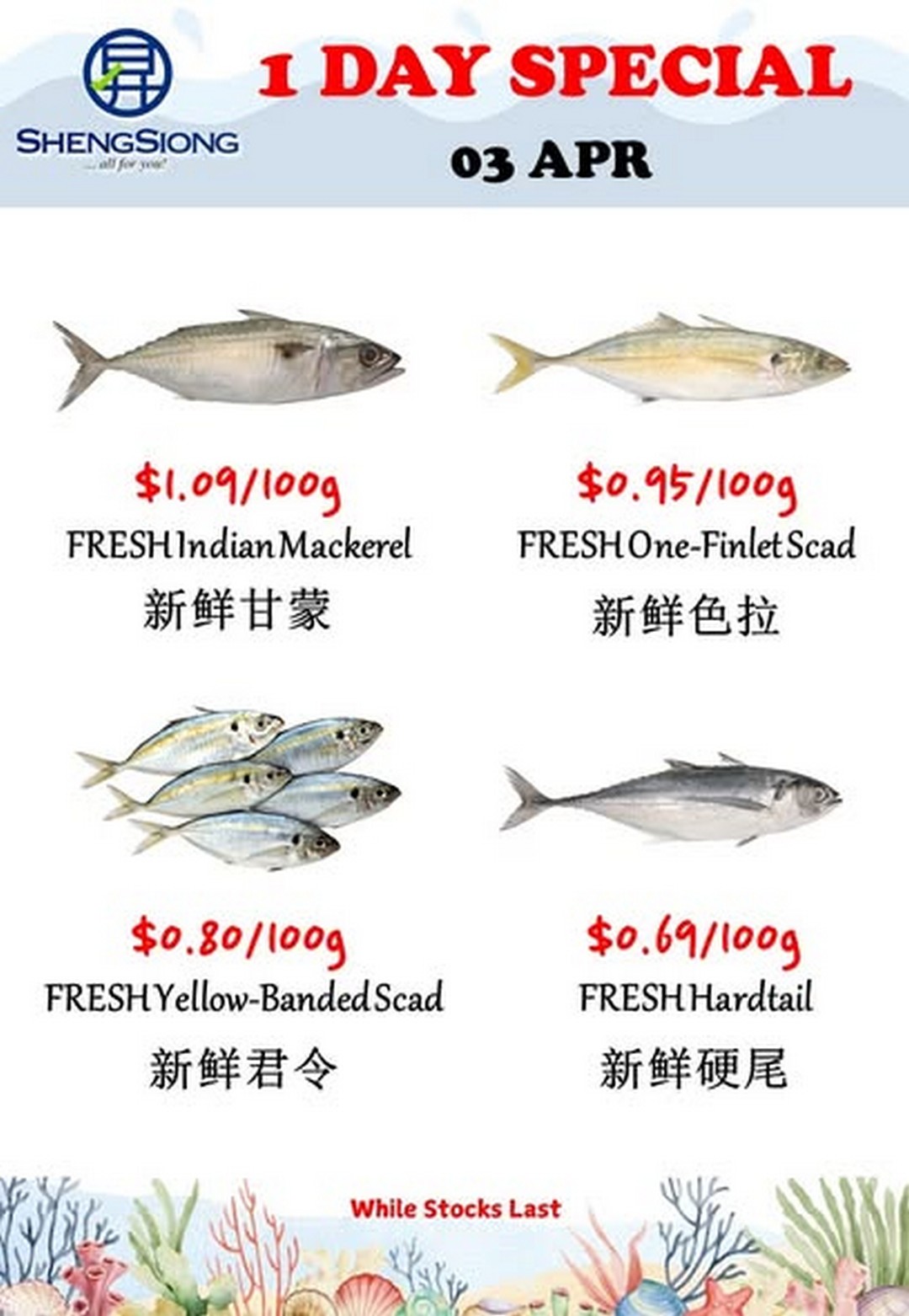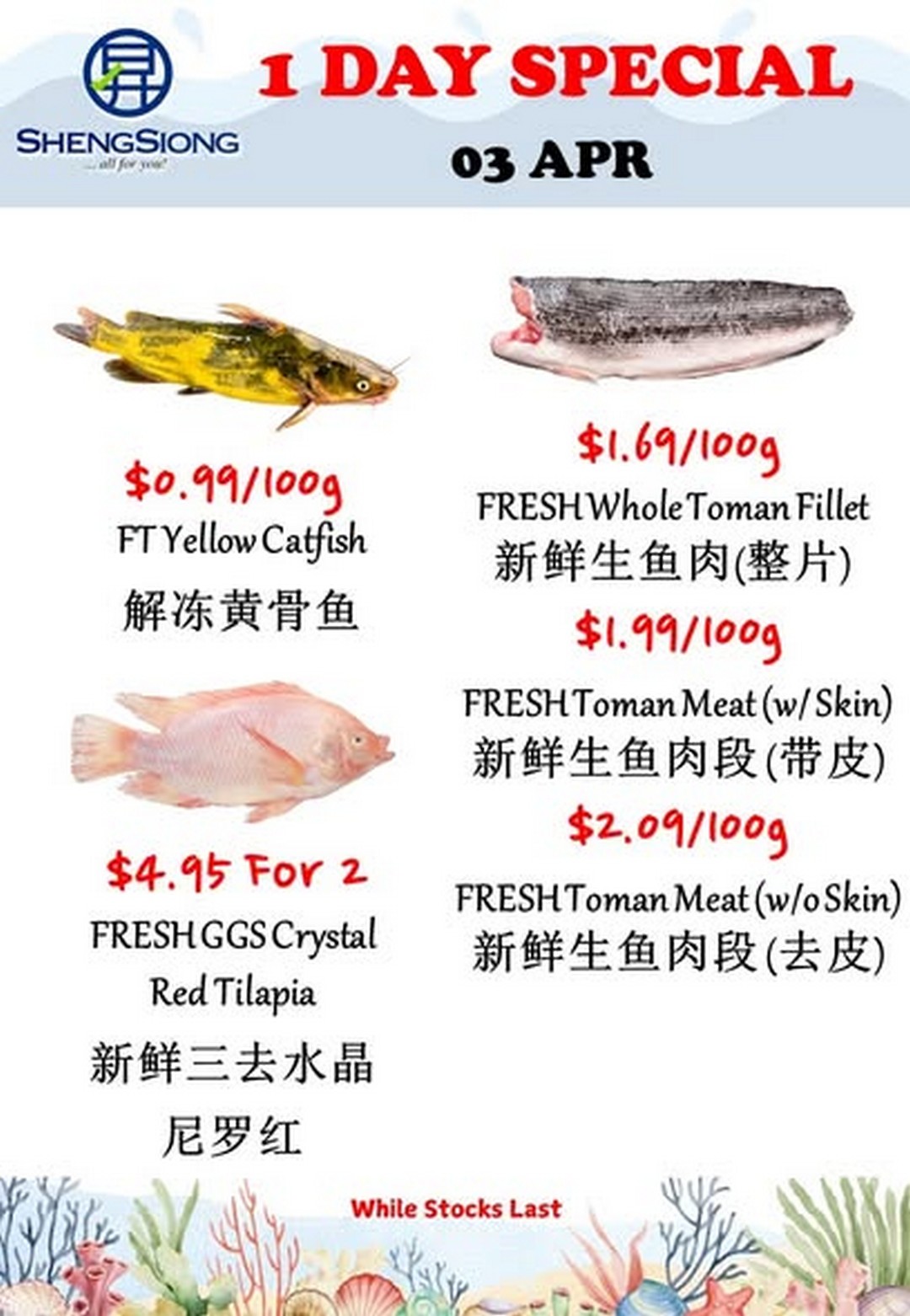 In summary, the Sheng Siong Supermarket Fresh Seafood Specials on 3 April 2026 offer more than just discounted prices. They provide an opportunity to enjoy fresh, high-quality ingredients, explore new recipes, and create memorable meals at home. With affordability, convenience, and variety all coming together, it is a promotion that is well worth checking out.